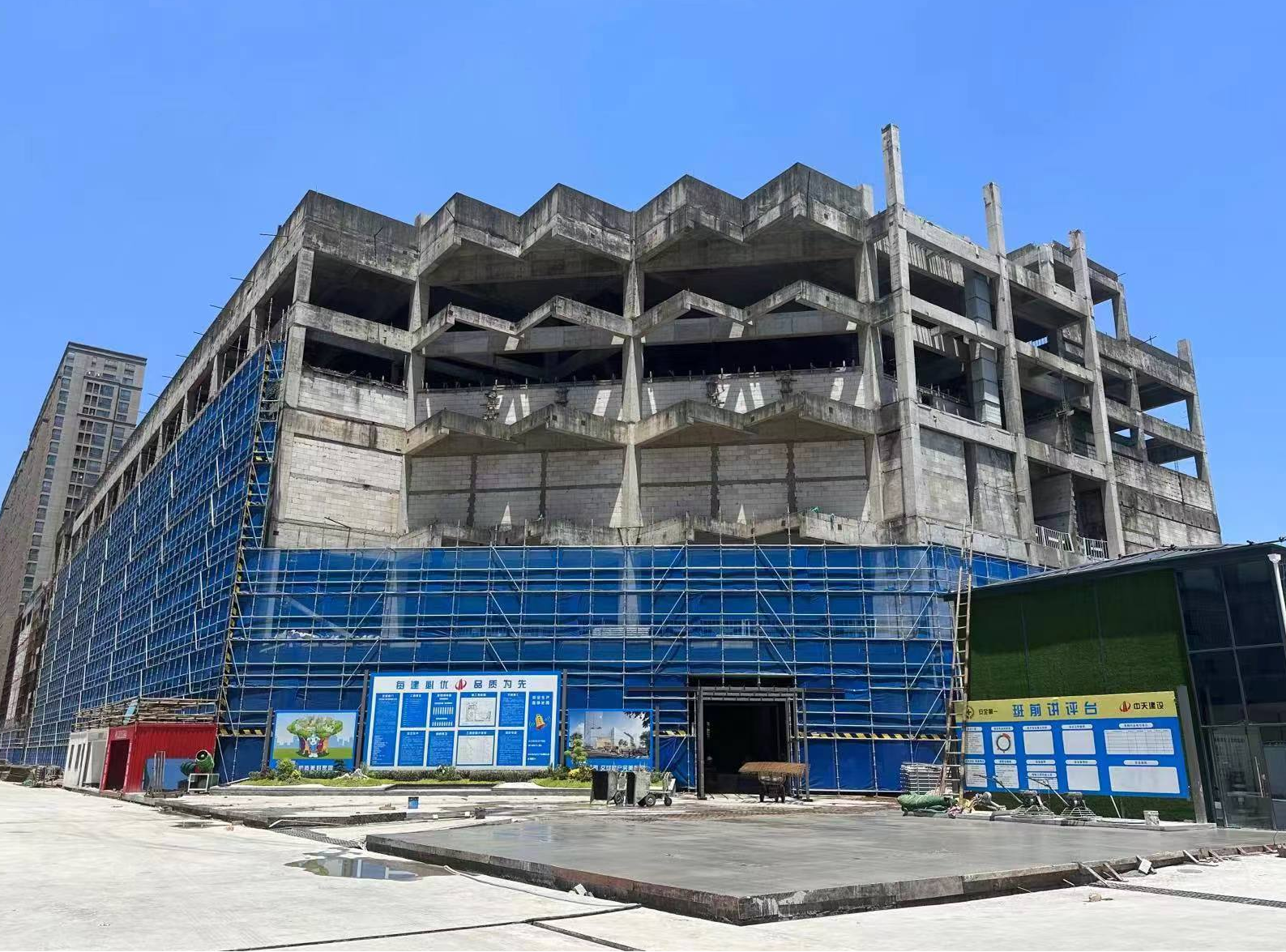 炎炎夏日下,龙湖钱湾EST施工作业正如火如荼进行,目前该项目正处于主体结构施工阶段,预计今年11月底完成主楼结顶。