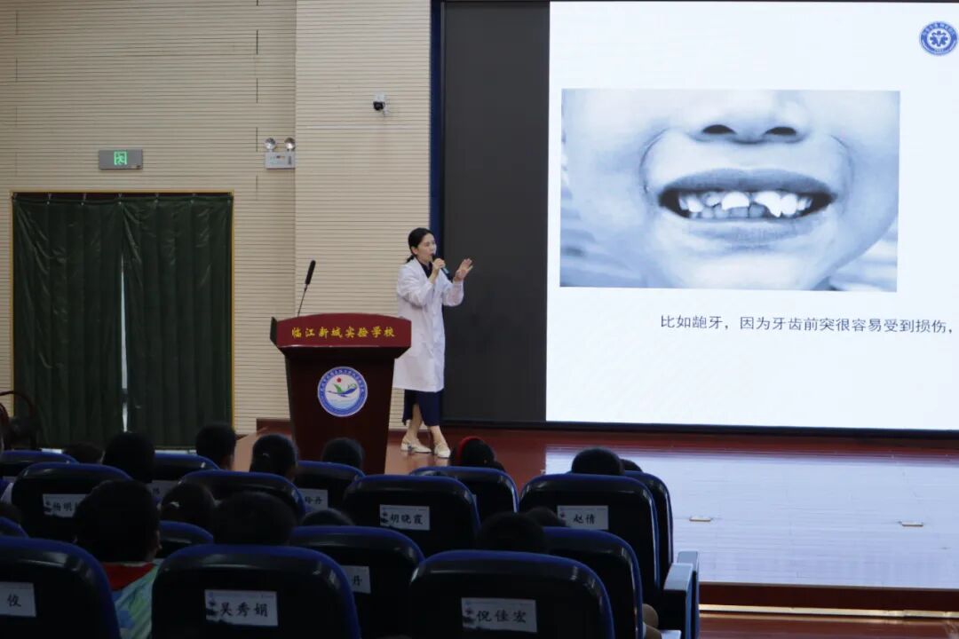 正是深知这一点,在这个旨在提高全民口腔健康意识的特殊日子里,我们选择与临江新城实验学校的同学们相遇,希望将爱牙护牙的种子,早早播撒在孩子们的心田。