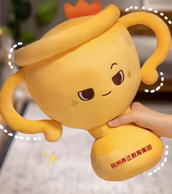 为期两天的运动会,颁奖环节成了全场最热闹的“惊喜时刻”。原来,当冠军站上领奖台,手里举起的不是冷硬的金属奖杯,而是一只“会卖萌”的毛绒版——经典奖杯造型裹着蓬松绒毛,圆溜溜的大眼睛透着灵气,还俏皮地摆出叉腰姿势。这份“反差萌”瞬间引爆全场,同学们的欢呼此起彼伏:“原来冠军奖杯能抱回家!也太想拥有了吧!”