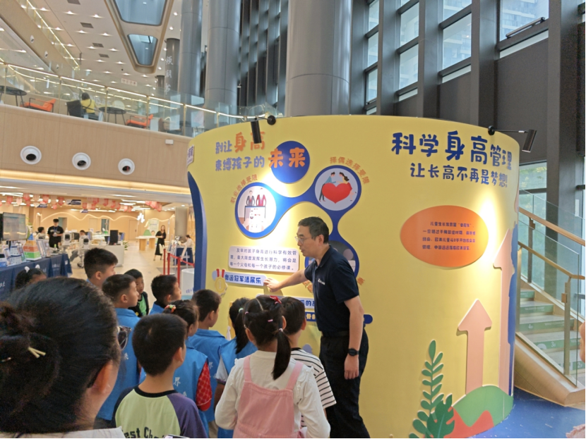 在《生命健康真奇妙》科普讲堂中,健康成长中心负责人牟航博士围绕近视防控、体重管理、合理膳食等内容,结合趣味实验和典型案例,深入浅出地为孩子们讲解健康知识。互动环节气氛活跃,孩子们踊跃提问,展现出对健康话题的浓厚兴趣与求知热情。