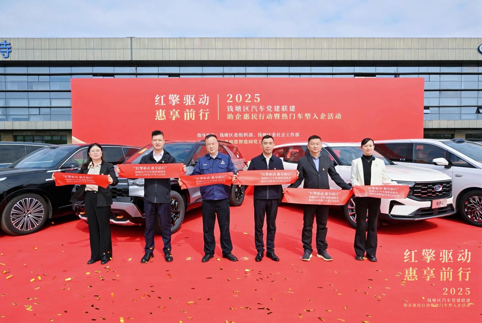 10月28日上午,“红擎驱动·惠享前行”钱塘区汽车党建联建助企惠民行动暨热门车型入企活动启动仪式在长安福特汽车有限公司杭州分公司举行,汇聚汽车产业上下游企业,以“四大助企项目”“八大惠民项目”推动“党建+产业链”融合模式走深走实。