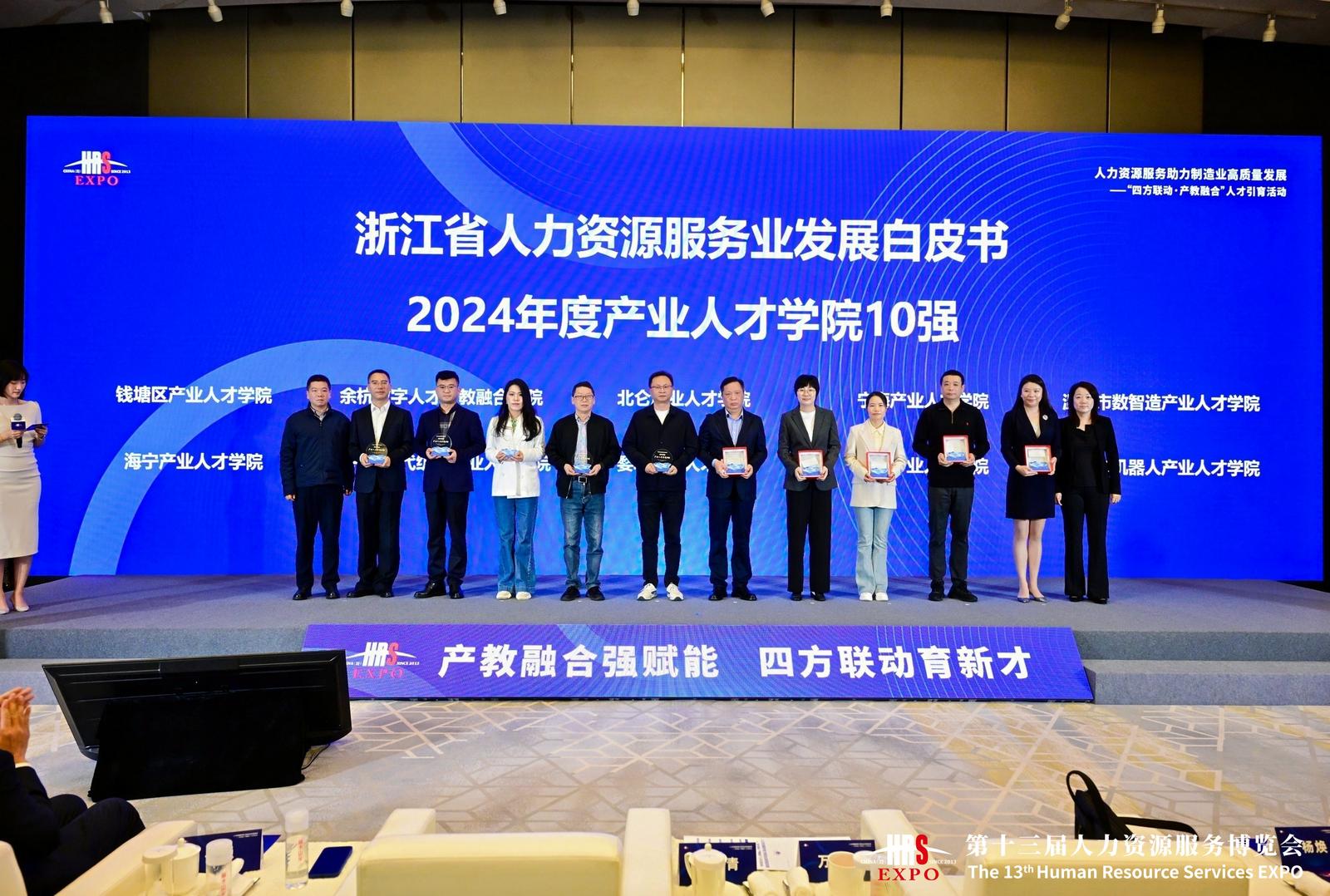 近日,浙江省人力资源服务业发展领域传来喜讯,钱塘产业人才学院凭借在产教深度融合领域的突出实践与丰硕成果,荣登浙江省人力资源服务业发展白皮书(2024)产业人才学院十强榜单。在表彰仪式上,钱塘区受邀领奖并作经验分享,其创新模式与建设成效同步获得省人社厅高度评价与充分肯定。