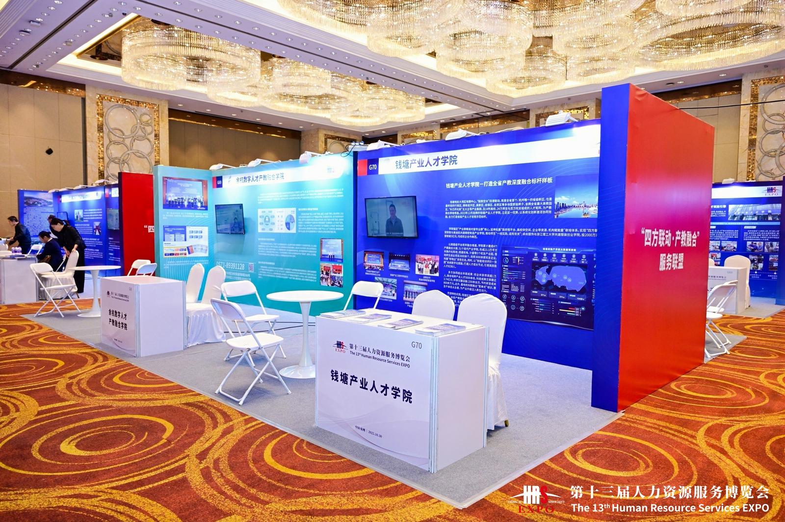 值得一提的是,在日前举办的第十三届浙江人力资源服务博览会上,钱塘产业人才学院专属展示专区精彩亮相,全方位展现了产教融合示范标杆的强劲实力与独特魅力,吸引了众多与会嘉宾、行业同仁驻足交流,成为展会期间的一大亮点。