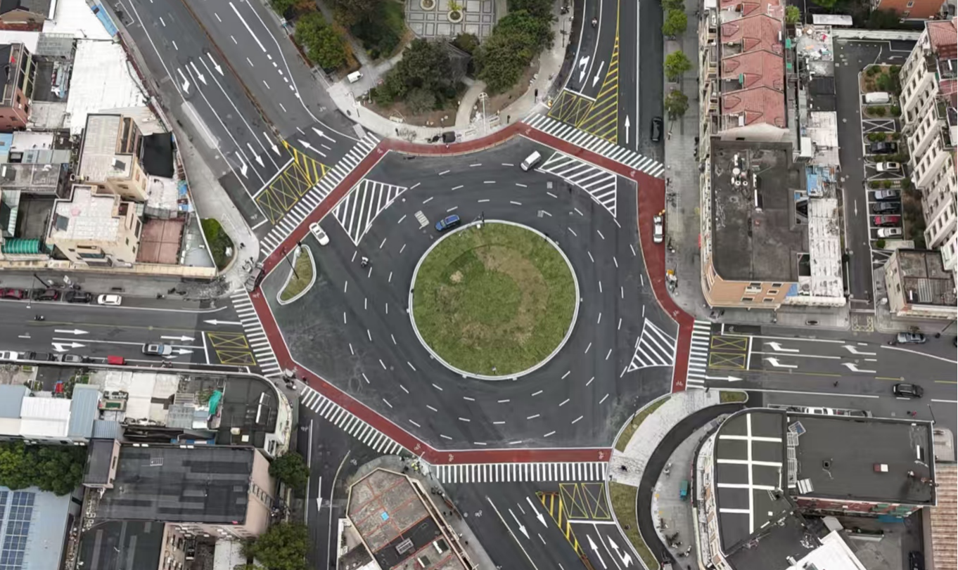 一是提升智能管控,新增多相位信号灯系统,精准调控各方向车流。二是规范路权分配,非机动车道采用彩色沥青铺设,实现机非分离,保障骑行者安全。三是优化通行指引,全面升级交通标志标线,明晰通行规则,引导车辆行人有序通行。