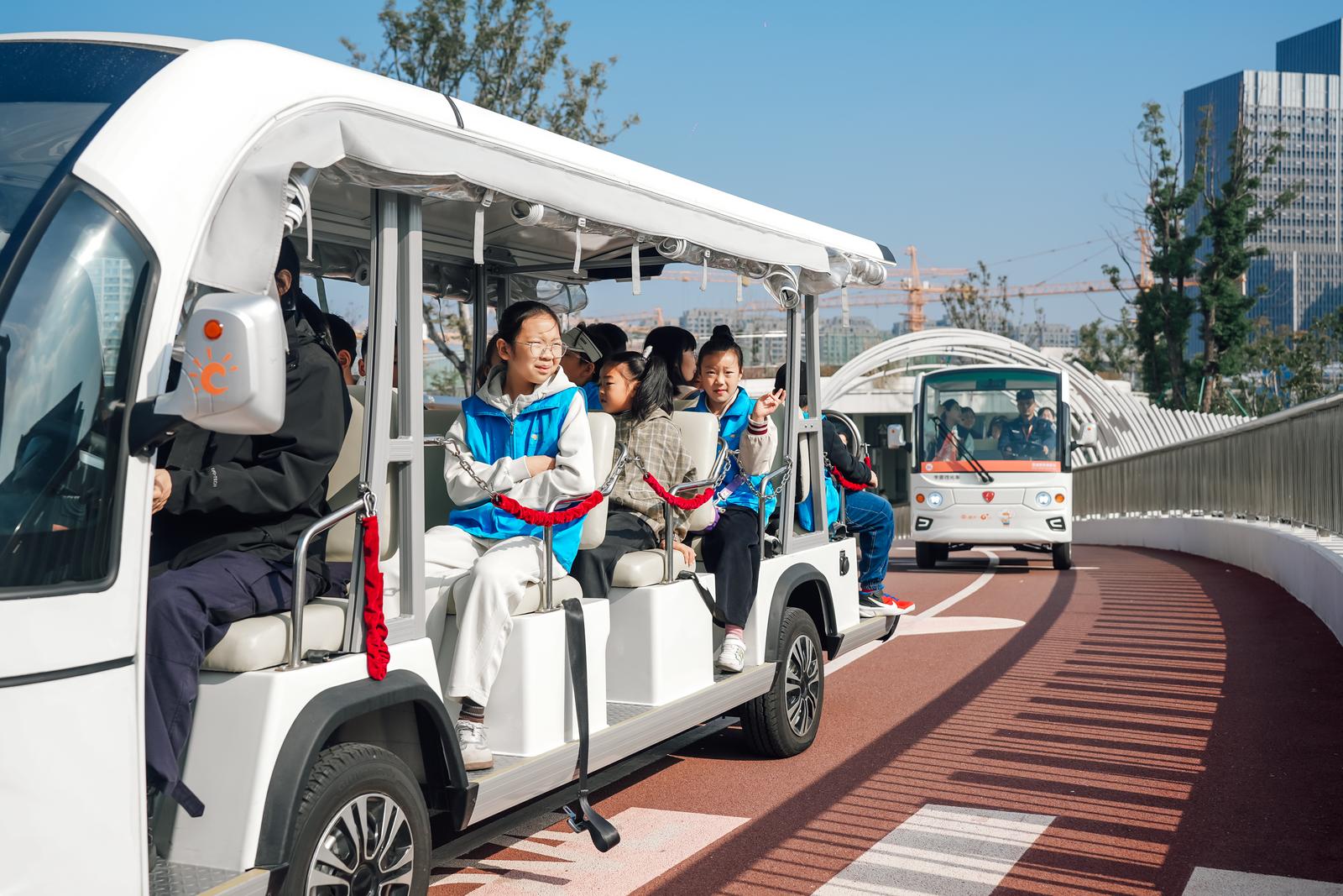 活动从环湖观光车游览开始。孩子们分乘观光车,沿湖欣赏秋日景致,在清风湖景中打开感知自然的窗口。