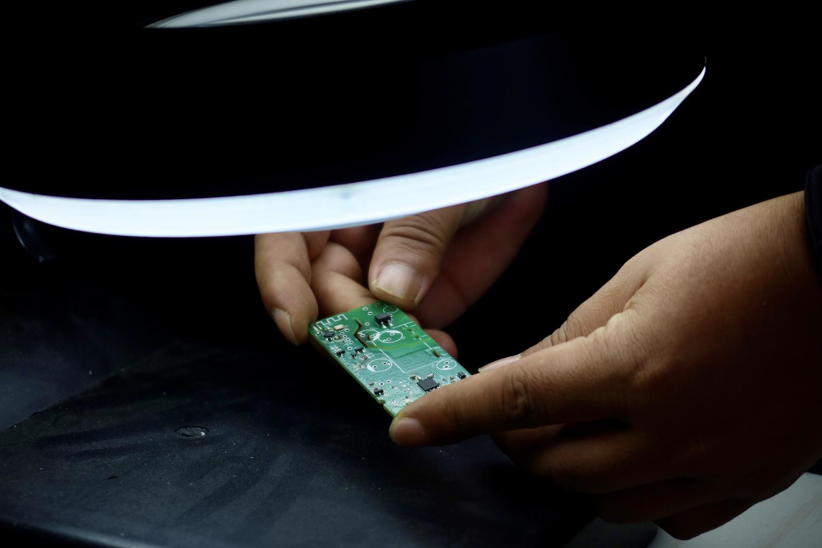 “我的工作,就是为每一台电焊设备赋予独一无二的‘数字身份’。”走进工作间,一位研发工程师正对一块即将完工的芯片线路板进行最后的测试。示波器上跳动着规则的波形,寓意着又一台焊机“智慧大脑”的诞生。