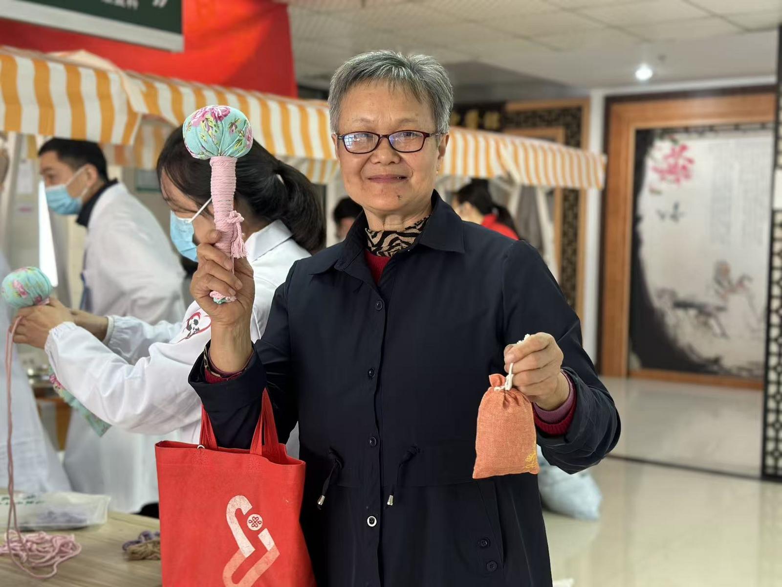最热闹的当属香囊制作区。大家围坐一起,在医师指导下挑选药材、搭配香料,亲手制作属于自己的健康手作。现场笑语不断,不少居民拿着成品,脸上洋溢着满足与喜悦。整个市集仿佛一个充满健康气息的聚会。
