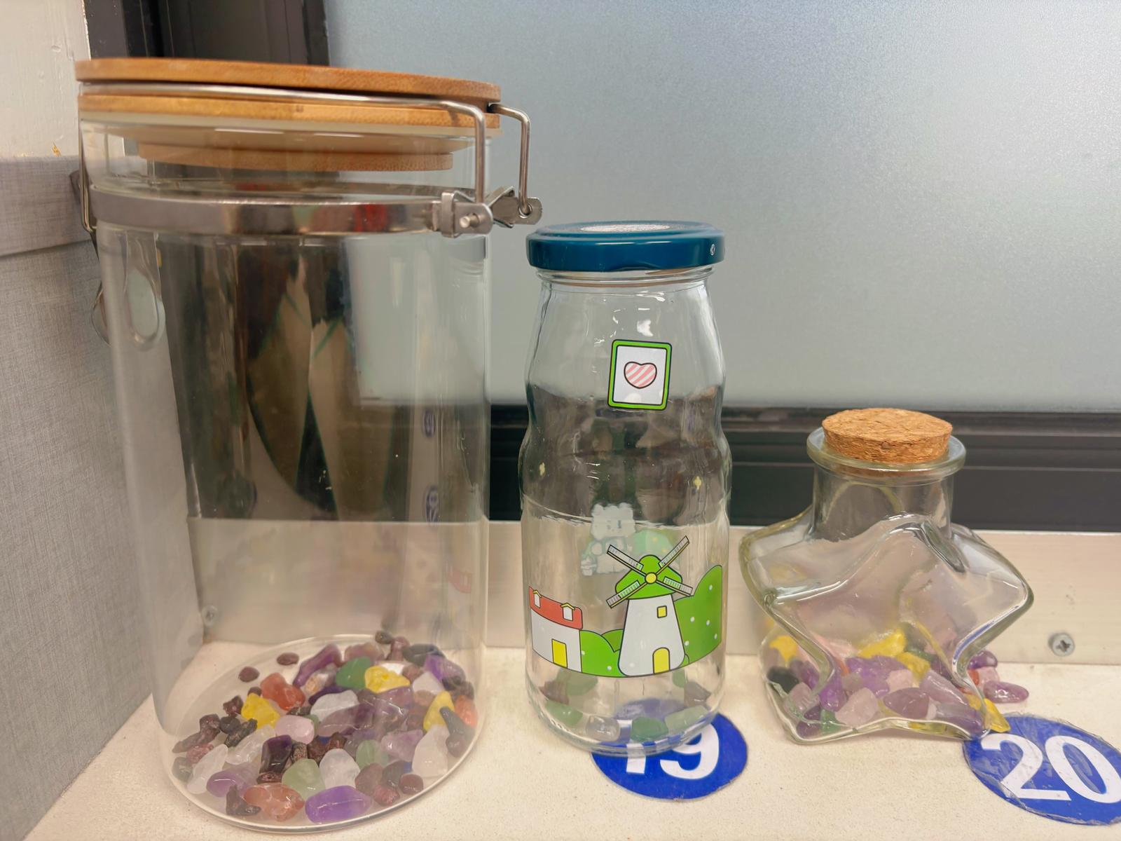 潘书扬随身带着一个小瓶子,里面有各色漂亮的小石头,他举起来给记者看。