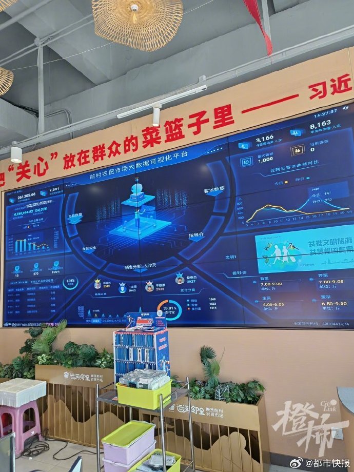 近日,有网友在社交平台发帖:杭州有个叫“前村”的菜市场,韩国旅游团一波接一波地来打卡,每次来,都现场买西瓜。 橙柿互动记者来到“前村农贸市场”,没有感受到这里的装修有多豪华,先映入眼帘的是一块大数据可视化平台电子屏,实时更新菜场当日销售额、交易笔数、客流量等信息。“经常有韩国旅游团来参观,韩国客人看到我们的菜摆得这么漂亮,都很惊讶,没见过的菜会盯着看,他们看什么都觉得很新鲜,很稀奇,很兴奋。” 据介绍,这里每年都要接待好几批外国参观团,尤其是韩国游客团为主。“他们一到菜场,先看到智能大屏,都会感到惊讶,韩国的农贸市场没有这种智能屏。我们这里一只西瓜三四十元,在他们国家一只西瓜折算成人民币要两三百元,每次来的韩国客人都会现场买西瓜品尝。”