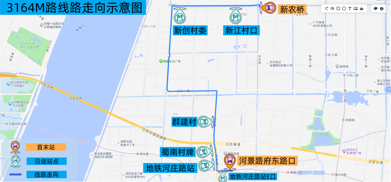 新辟3164M路,首末站:新农桥至河景路府东路口。