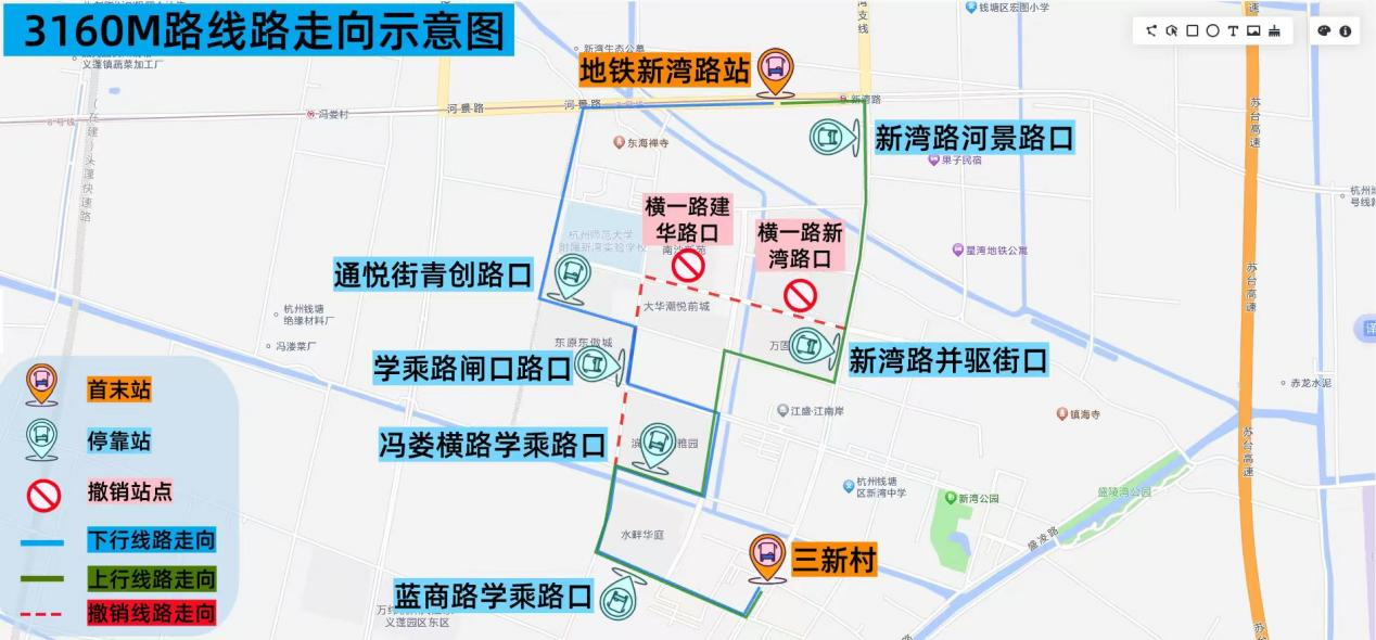 为进一步提升公交运营管理水平,填补江东区域新江村、新创村的公交空白,同时方便新湾区域与地铁8号线接驳,结合线路运营实际,经研究,自2025年11月28日起新辟3164M路,同时调整3160M路、3161M路、新湾云公交。