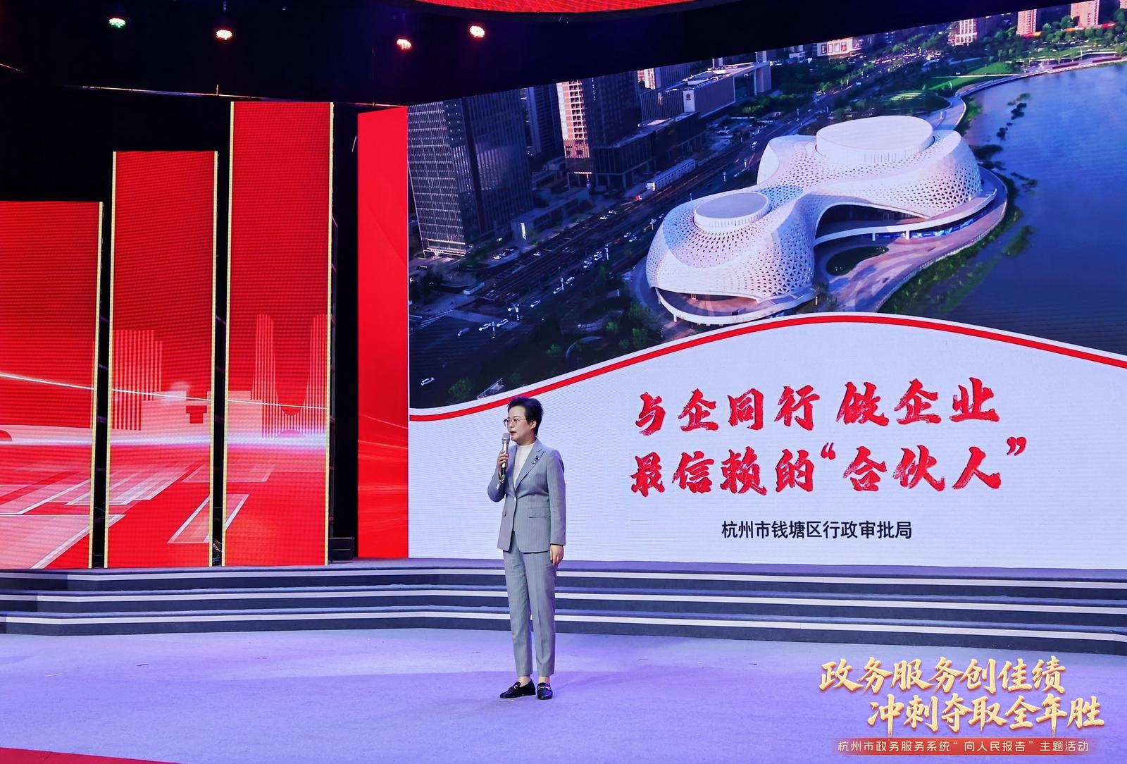 11月26日,在市审管办联合市委宣传部(市文明办)、市委直属机关工委共同举办的“政务服务创佳绩 冲刺夺取全年胜”杭州市政务服务系统“向人民报告”主题活动中,钱塘区行政审批局(政务服务中心)喜获杭州市政务服务系统最具党建引领奖、最佳服务实践奖(推进国企综合交易电子化全市应用)、杭州市“企呼我应”首届企业服务岗位竞赛三等奖等多项荣誉。钱塘区行政审批局主要负责人现场进行政务宣讲。