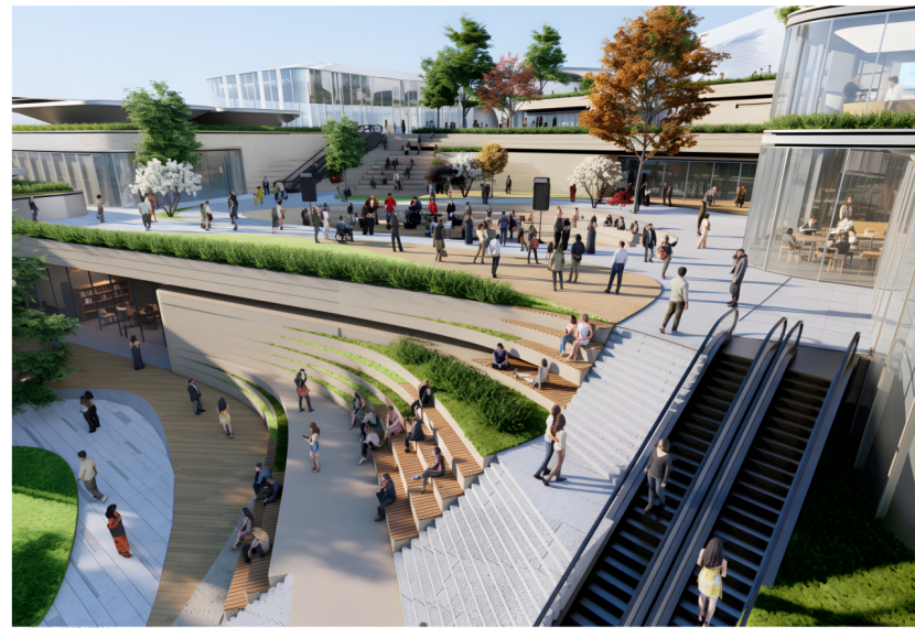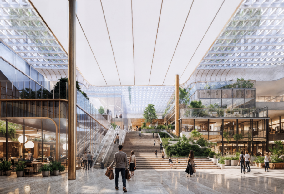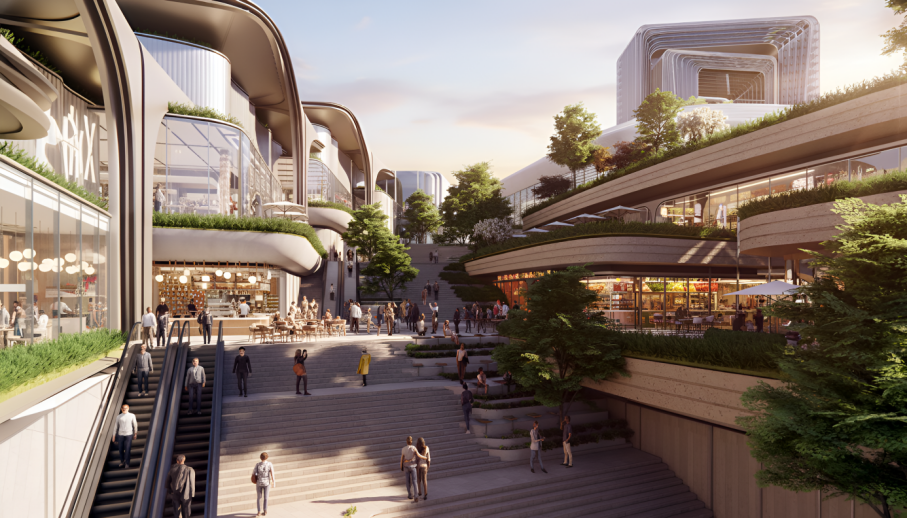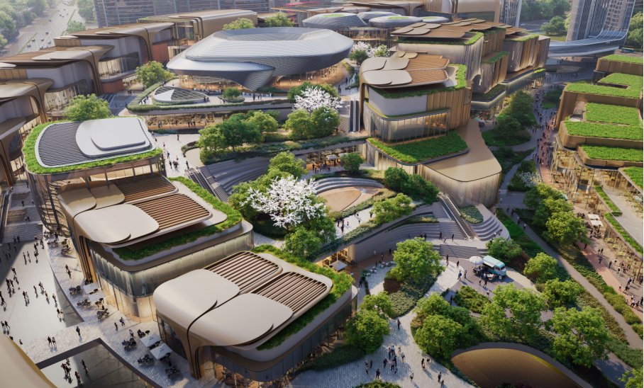 令人惊喜的是,商业综合体中还将打造一座“3D”的立体市民公园——“超级绿芯”,方便市民亲近自然。相当于把商业楼栋打造成一个“可漫步的空中花园”,走在里面心情开阔,比如采用退台式设计,在建筑逐层形成“露台花园”,市民逛街时就像走在公园里,接触绿色放松身心。