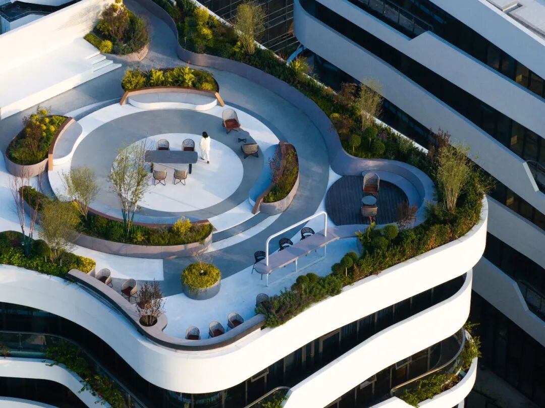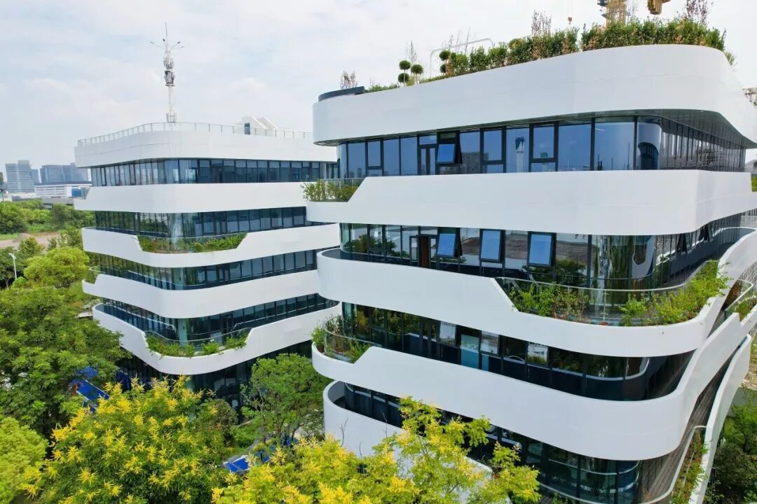 值得一提的是,科技园在设计风格上独具特色,3幢研发楼突破了传统的建筑手法,打造螺旋上升的室外花园,让其灵活地坐落在建筑群中,宛如一座悬浮着的“空中花园”,大面积的绿植及精致的装饰构成一座“城市绿岛”,让大家可以随时随地感受大自然的活力。