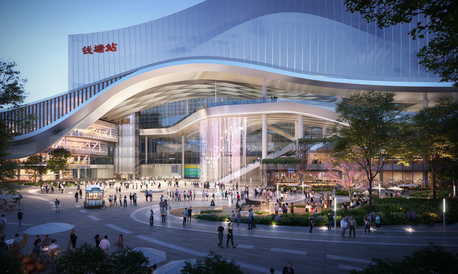钱塘高铁站和海宁观潮站,在开发理念、站厅外形上存在许多相似的地方。两座站点都采用新型开发模式,也就是“站城一体”,将高铁站与商业和城市轨道交通等功能融合在一起,释放土地发展潜力。
