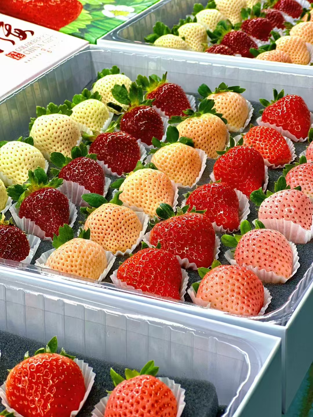 “红、白、粉、橙草莓可以采摘了,黑草莓还要再等等。”在“智慧莓园”,工作人员轻点手机小程序,立体种植架缓缓下降,直至与游客的腰部齐平。“喜欢哪种草莓,任你挑!”他笑着伸出手,只见掌心四色草莓饱满玲珑。