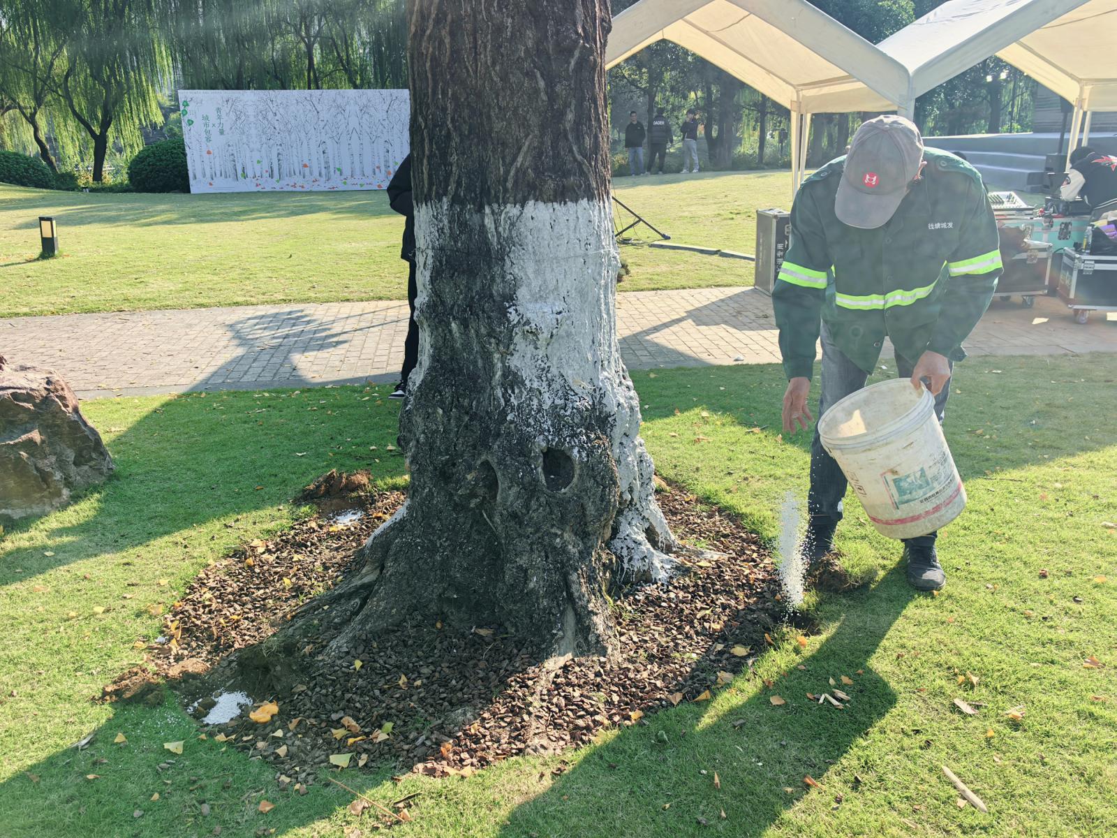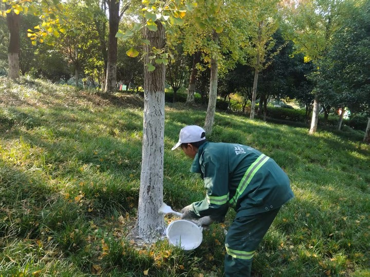 走在街头,随处可见园林工人们忙碌的身影。他们手持刷子,细致地为行道树涂上特制的白色保护剂。这层看似简单的“冬衣”,实则是树木的“防护服”,不仅能反射阳光,防止树干因昼夜温差过大而开裂,还能有效杀灭潜伏在树皮裂缝中的病菌和虫卵。
