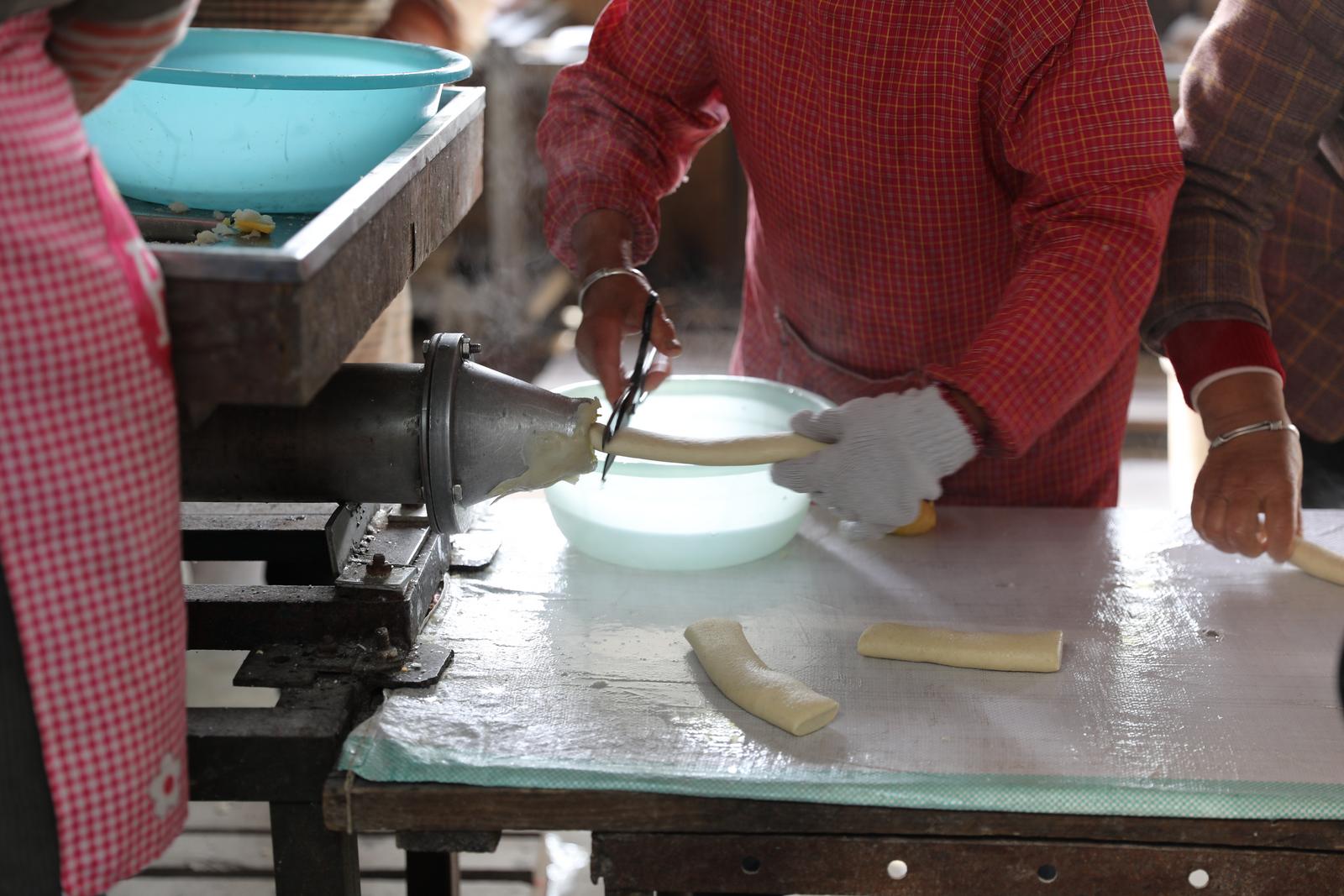 走进作坊,最先撞入耳朵的是机器运转的轰鸣声,混着米粉与蒸汽交融的气息,成了冬日里最鲜活的背景音。女主人应水兰系着沾了细碎米粉的红布围裙,双手熟练地搅动蒸笼里的米粉团,额角渗出的细汗映着蒸汽,在冬日里晕开一层柔和的光。