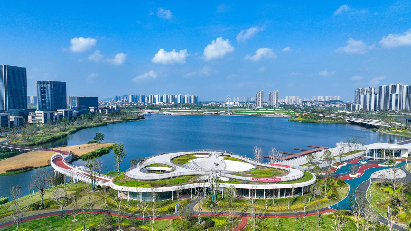 绿水青山的生态底色与共同富裕的发展目标,彰显着风貌区的又一独特魅力。江海之城以“水清清”“绿通通”专项行动为抓手,通过加密污水管网、构筑生态缓冲带等举措,让东沙湖水系水质稳步提升至四类标准,拿下了“杭州市优秀园林绿化工程”5星认证。江海之城还创新打造三类共富风貌驿站织就服务网络,景区型驿站承接客流、园区型橙光驿站赋能企业、社区型驿站传递温情,再以两条特色风貌游线串联全域生产生活节点、景观休闲节点、产业服务节点等多元场景,通过“公共空间变资产”让生态空间既聚人气更暖民心。