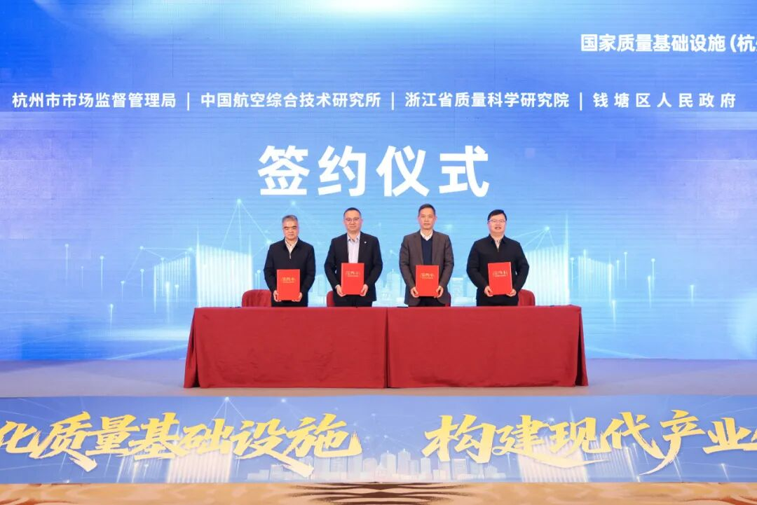 政企研协同发力的步伐在此加速。现场,钱塘区人民政府与中国航空综合技术研究所、浙江省质量科学研究院、杭州市市场监督管理局签署四方合作协议,将聚焦低空经济、商业航天等新兴领域开展技术攻关,进一步完善钱塘新兴产业质量服务体系,为未来产业发展筑牢质量根基。