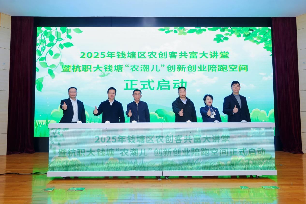 青年逐梦赋能乡村,校地共建助力共富。近日,钱塘区农创客共富大讲堂暨杭职大钱塘“农潮儿”创新创业陪跑空间共建启动仪式在杭州职业技术大学(以下简称“杭职大”)举行。一场聚焦青年与乡村“双向奔赴”的生动实践,在此拉开序幕。