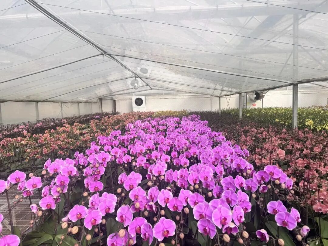 产业升级的脚步也正在这片传统基地里悄然提速。王世福指着墙角的监控设备介绍,明年基地将全面引入数字农业系统,“到时候温度、湿度、光照这些数据都能实时传输到电脑大屏上,系统还能自动预警生长异常,浇水施肥也能实现精准控制”。数字化改造不仅能降低人工成本,更能让蝴蝶兰培育从“凭经验”转向“靠数据”,进一步提升品质稳定性。