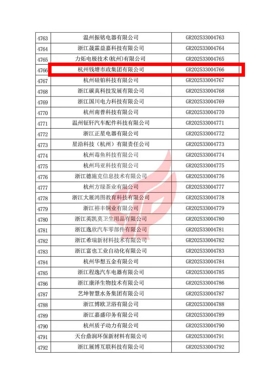 近日,钱塘市政集团顺利通过国家高新技术企业资质评审,获得国家级科技创新认定。此次认定不仅标志着集团在技术创新与研发实力方面持续获得国家级权威认可,也为企业进一步享受政策支持、推动技术升级与产业转型奠定了坚实基础。