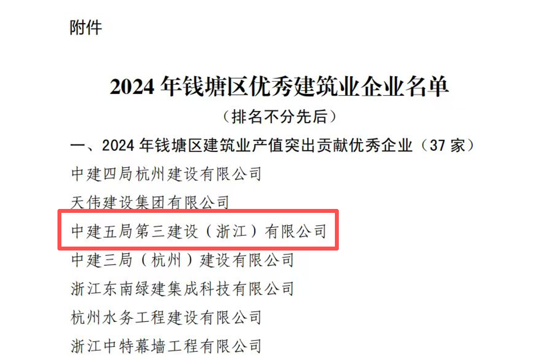 凭借精准布局与高效服务,公司快速赢得属地认可,获评“钱塘区建筑业产值突出贡献企业”“钱塘区建筑业产值显著提升优秀企业”,并当选区建筑业协会副会长单位,荣获“强建筑企业”“钱塘区建筑业协会突出贡献会员单位”,平台资源聚合效应日益增强。
