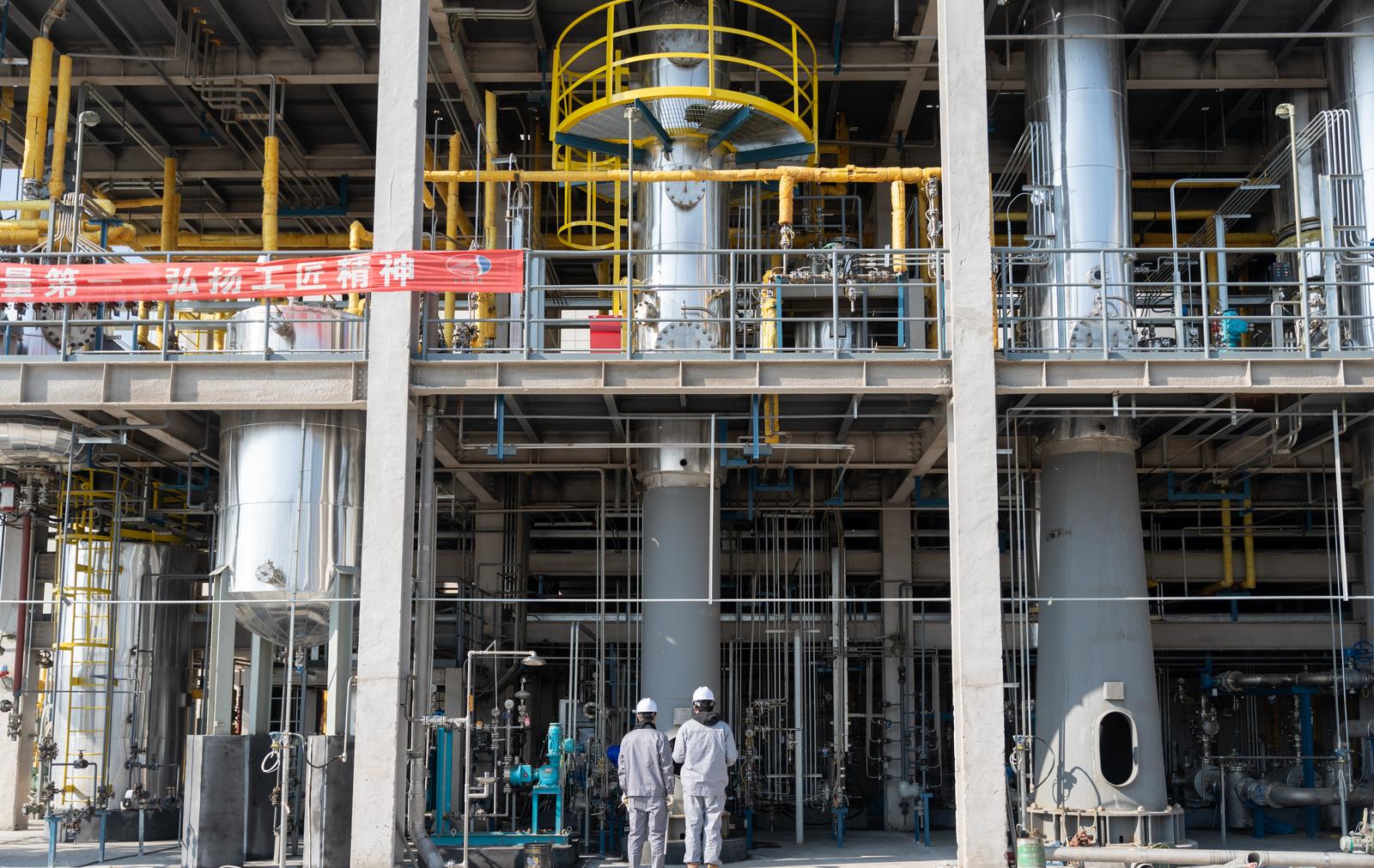 走进聚合车间,一台台巨型反应釜静静矗立,蓄势待发。这个占地近80亩、总投资约10亿元的项目,规划建设了350吨/年的M级石墨纤维生产线及配套高性能原丝生产线,内容包括聚合车间、纺丝车间、碳化车间、公辅车间等。