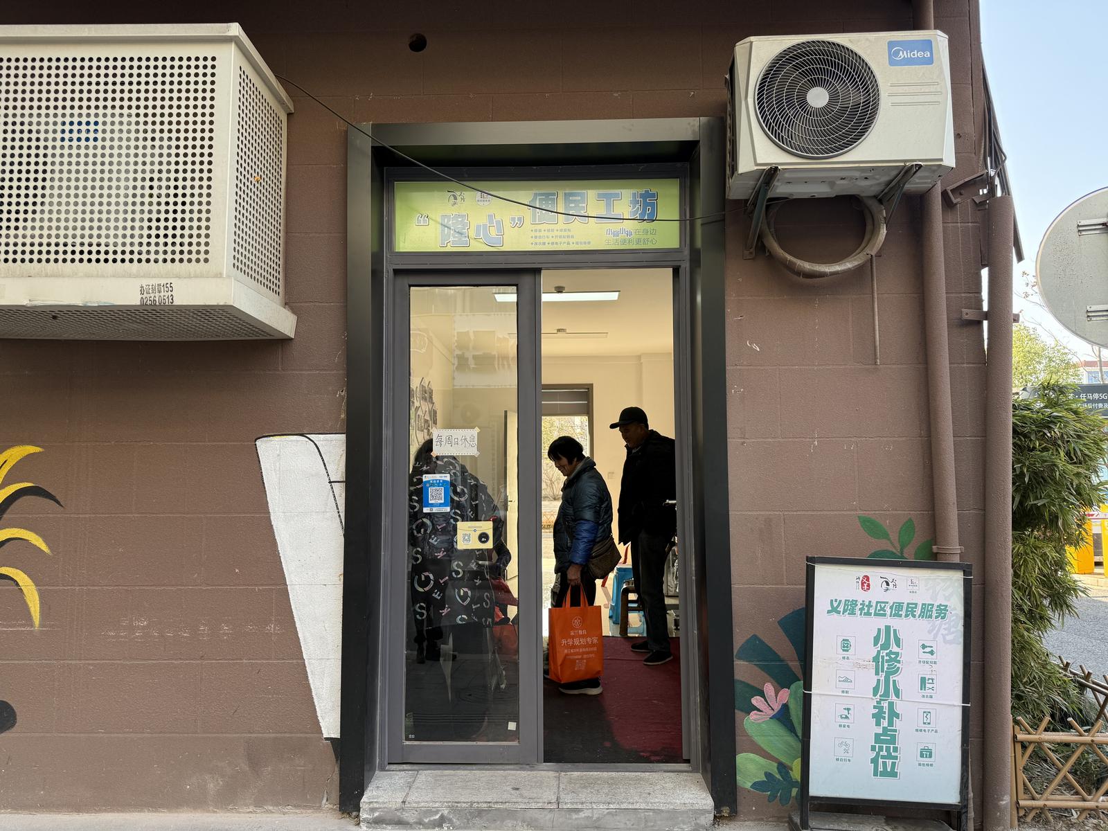 “以前就在街边摆个小摊。”李师傅回忆起过往,“夏天太阳晒得头皮发麻,下雨天就得赶紧收摊,不然鞋子、工具全淋湿。”社区工作人员在走访中了解到李师傅的情况——老伴去世,独自生活,虽有一手好技艺,但工作环境艰苦。恰逢区里推动“小修小补”便民服务回归,街道和社区决定将蓬客公寓一间临街房间免费提供给他使用,还贴心地安装了空调。