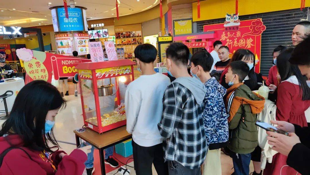 免费提供现制元宵、爆米花、棉花糖等节令小食,用舌尖上的甜意传递节日温暖。