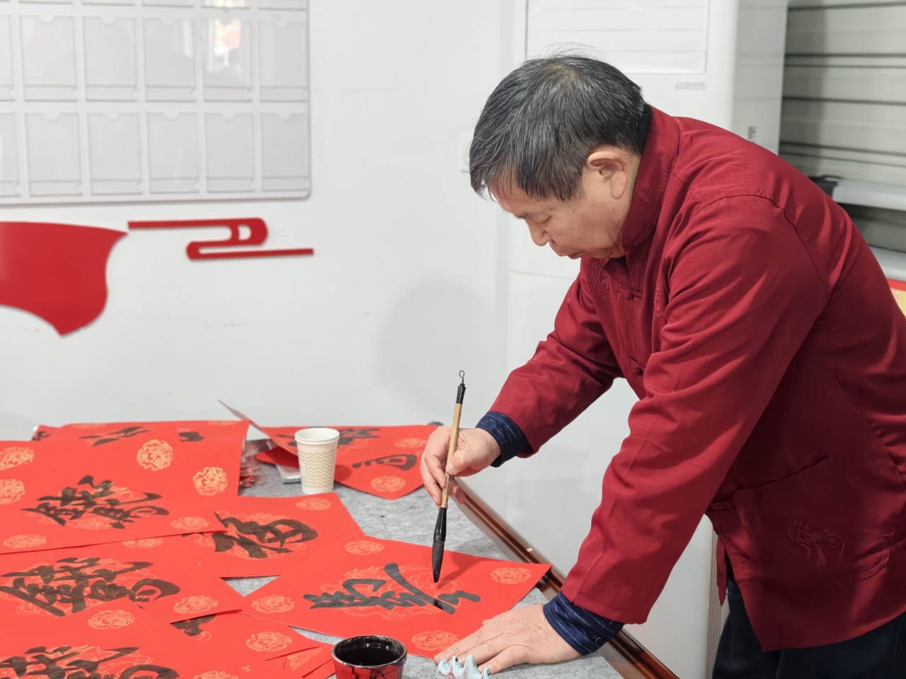 为深入弘扬中华优秀传统文化,进一步深化党建联建成果,凝聚党员向心力,近日,新湾街道冯娄村党总支联合萧山农商银行新湾支行举办“墨笔迎春”主题活动,特别邀请卢祖永老师现场挥毫,为冯娄村全体党员送上满载新春祝福的书法作品,让墨香与暖意交织。