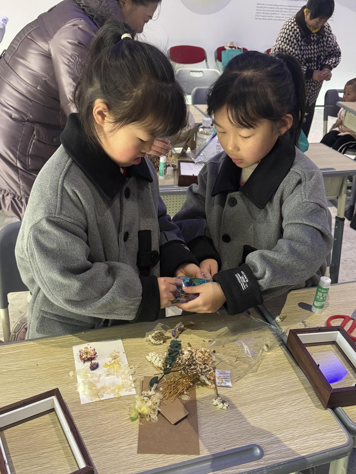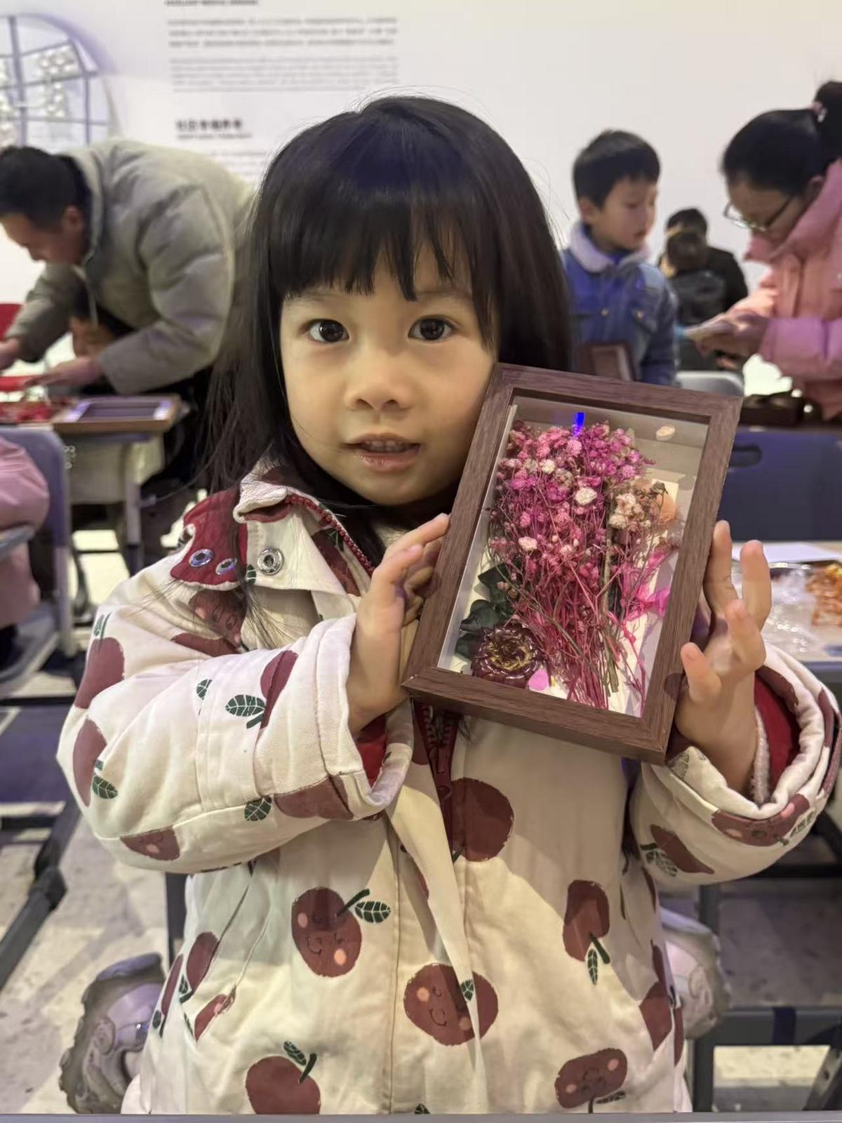 本次活动以新春为契机,将“怡情之悦”融入“艺术创作+亲情联结”之中,通过沉浸式手作体验,让“同心”思想在温馨互动中自然流淌。在义蓬街道统战之家方老师的悉心引导下,家长与孩子携手选材、构思配色、精心布局,共同将绽放不谢的永生花定格于方寸相框内。每一片花瓣的安放,不仅是美的创造,更是情感的传递;每一个相框的完成,不仅凝聚着亲子间的默契,也承载着对家国未来的美好祝愿。活动让参与家庭在愉悦创作中深化情感共鸣,让“同心向党”的信念通过艺术与亲情沁入人心。