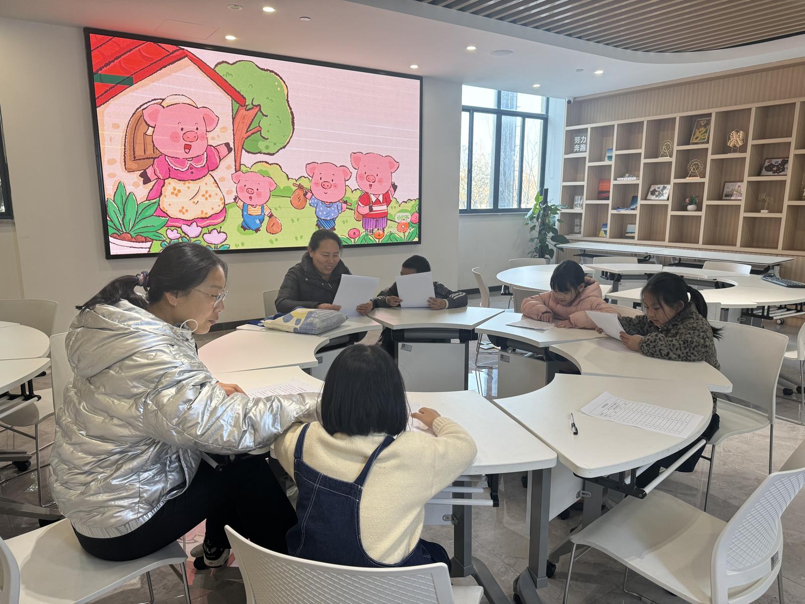 现场,针对小学低年级学生,活动打造了充满童趣的《三只小猪》创意剧场。孩子们先观看生动有趣的动画短片,随后分组进行角色扮演。他们戴上亲手制作的角色头饰,化身勤劳的小猪和狡猾的大灰狼,在简易布景前认真演绎经典情节。现场笑声不断,一位扮演“猪老三”的小朋友大声说出台词:“我要用砖头盖最坚固的房子!”引得大家连连喝彩。通过沉浸式体验,孩子们不仅理解了故事中勤劳踏实的寓意,更锻炼了语言表达与团队协作能力。