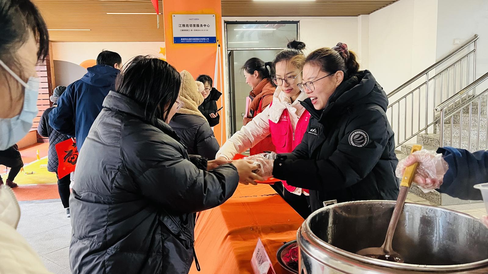 1月26日腊八节,前悦社区党群服务中心门口既飘着阵阵米香,又洋溢着欢声笑语。 前悦社区开展“腊八送暖” 与传统文化主题活动,让暖意与年味交织蔓延。