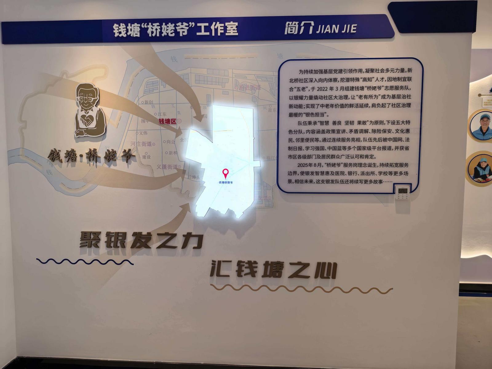 在新湾街道新北桥社区“桥姥爷”工作室里,这句醒目的标语不仅镌刻着钱塘人勇立潮头的精神特质,更承载着一群长者用热忱连接邻里、用智慧赋能社区的初心使命。