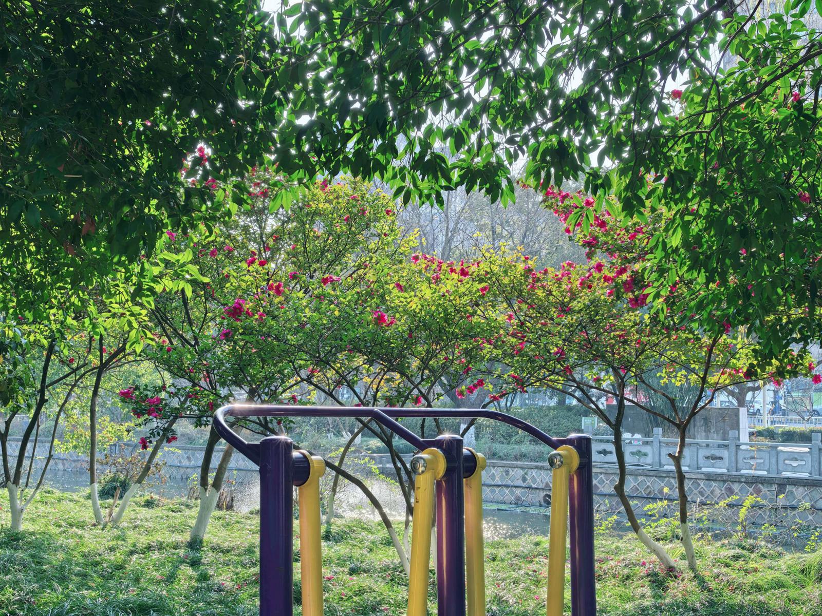 特别值得一提的是,茶梅正巧妙地点缀在公园的健身设施旁。当人们在健身漫步时,抬眼便能望见这一丛丛冬日里难得的娇艳,为充满活力的运动场景,增添了一份静雅的观赏趣味,实现了“动”与“静”的和谐共生。