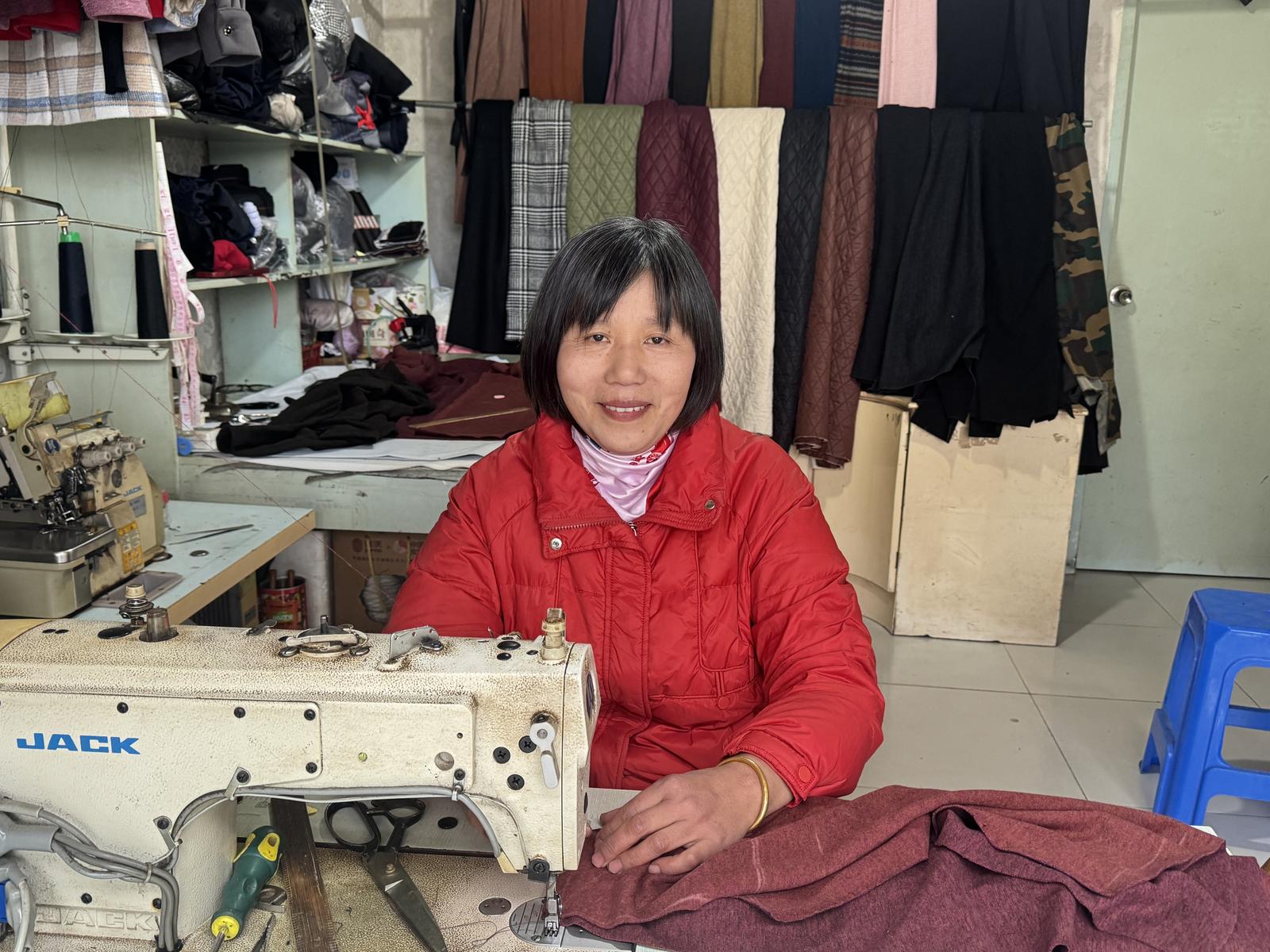 在临江街道萧东村东海直桥桥头,藏着一家没有招牌门头的裁缝铺。40平方米的方正空间,朴素得若不仔细打量,很难发现这里藏着一门坚守了三十余年的缝纫手艺。铺子的主人戚月琴,从21岁起便守着这个老位置,把时光与匠心都缝进了一针一线里。