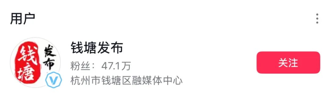 直播开始后,打开抖音搜索并关注“钱塘发布”,点击账号头像即可观看直播。