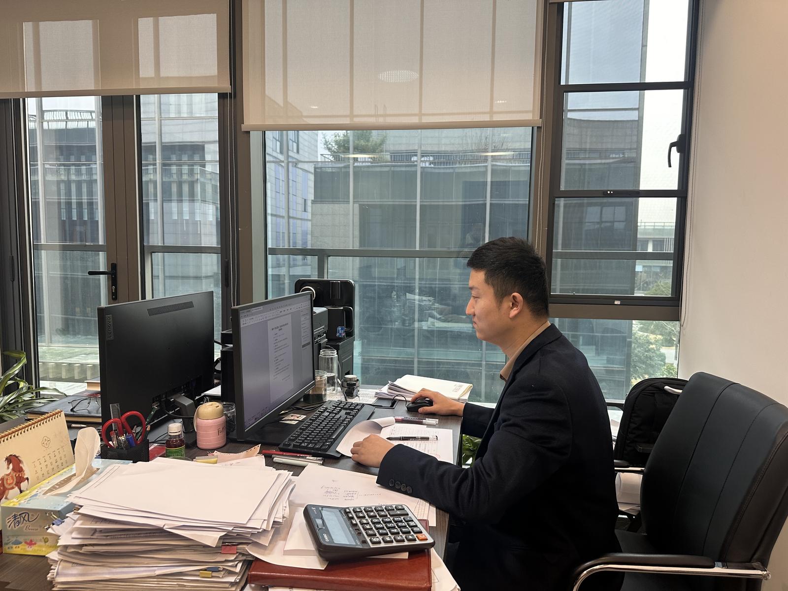 推开胡成光办公室的门,桌上除了财务报表,还放着一顶沾着灰尘的安全帽。这位从区城发集团临江公司派驻到高铁新城项目的业务骨干,深耕财务审计、固投统计一线,承担起联系机场高铁公司及高铁新城公司向上争取要素资金的重任。
