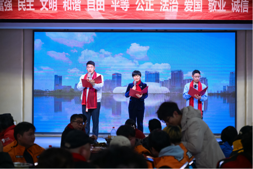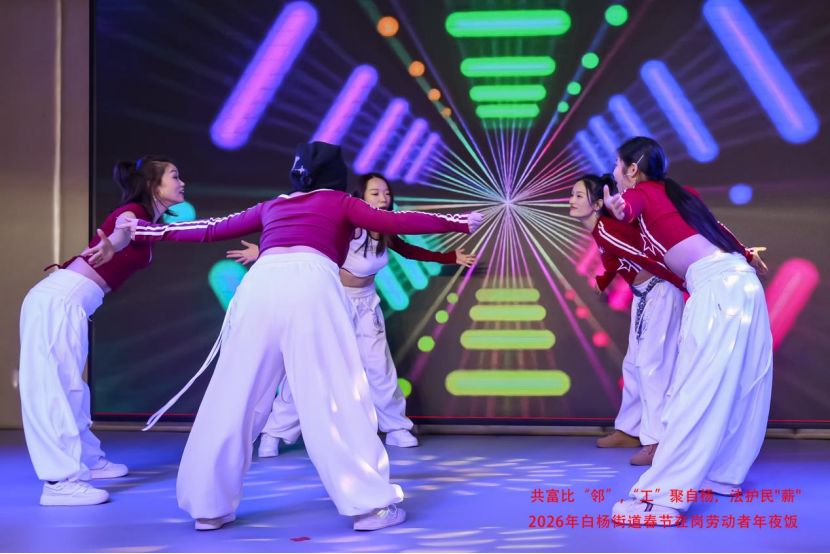 近日,在新春佳节来临之际,白杨街道邻里社区党群服务中心三楼张灯结彩、暖意融融,产业工人“春晚”暨白杨工会2026年春节在岗劳动者年夜饭温情
