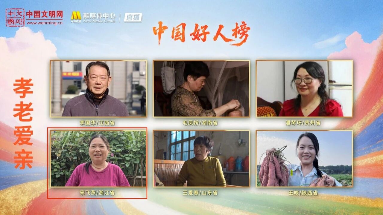 在义蓬街道春雷村,有这样一位普通却不平凡的农村妇女。她叫宋飞燕,今年52岁。不久前,她荣登2025年第四批“中国好人榜”,获评“孝老爱亲”好人。
