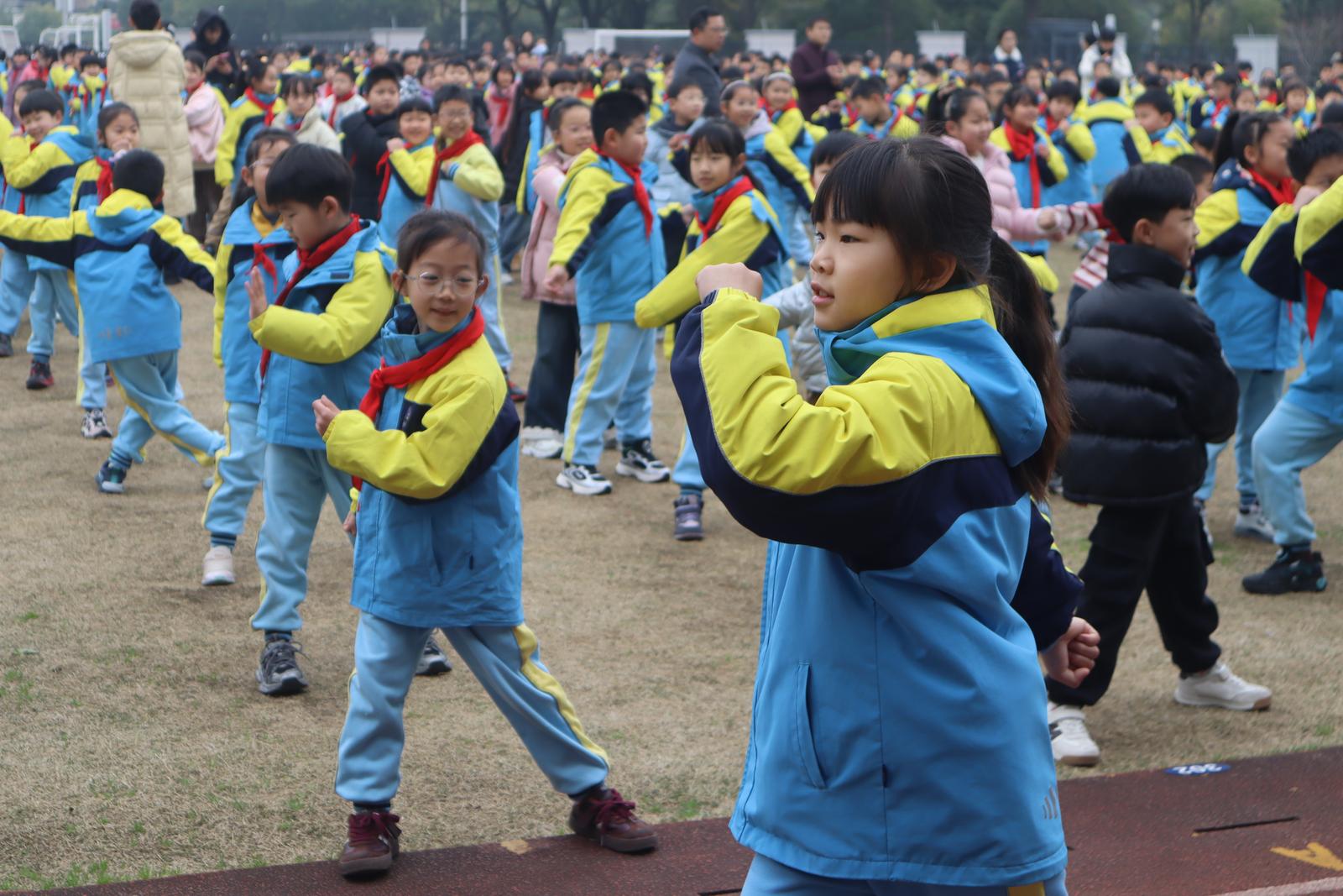 音乐组老师带领的排舞《天天向上》更是点燃全场,孩子们踩着动感节奏尽情舞动,蹦蹦跳跳、活力满满,整个操场变成了欢乐的海洋。这场不一般的开学典礼,让孩子们在轻松欢乐中迎接新学期。