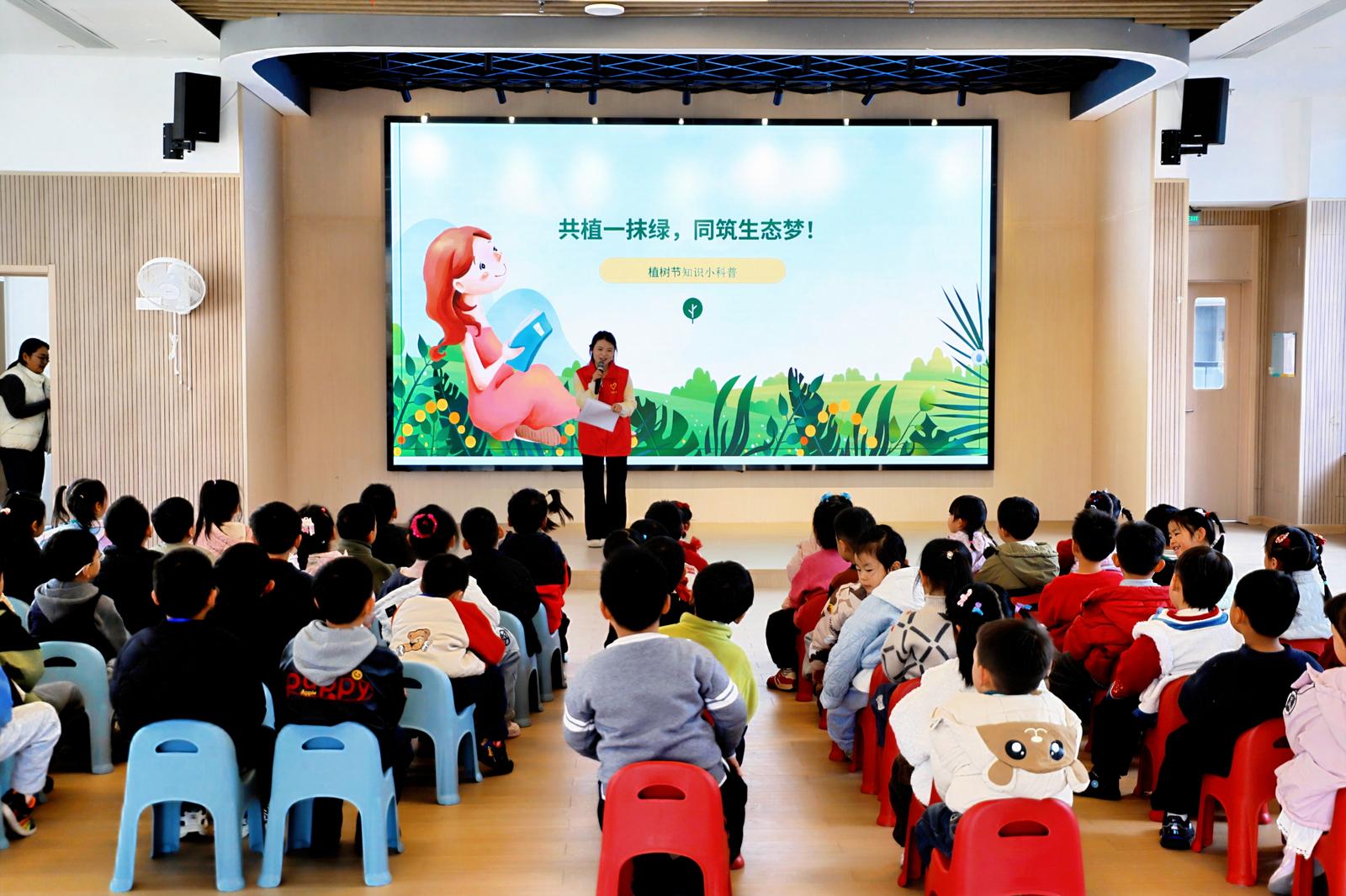 活动伊始,一场生动有趣的植树节主题课堂在云涛幼儿园三楼音乐厅拉开帷幕。超英志愿者用童趣化的语言为孩子们普及植树节的由来、植树造林的意义以及日常生活中的环保行动,引导孩子们从小树立环保意识。课堂上,孩子们认真聆听,积极互动,现场洋溢着浓厚的学习氛围。