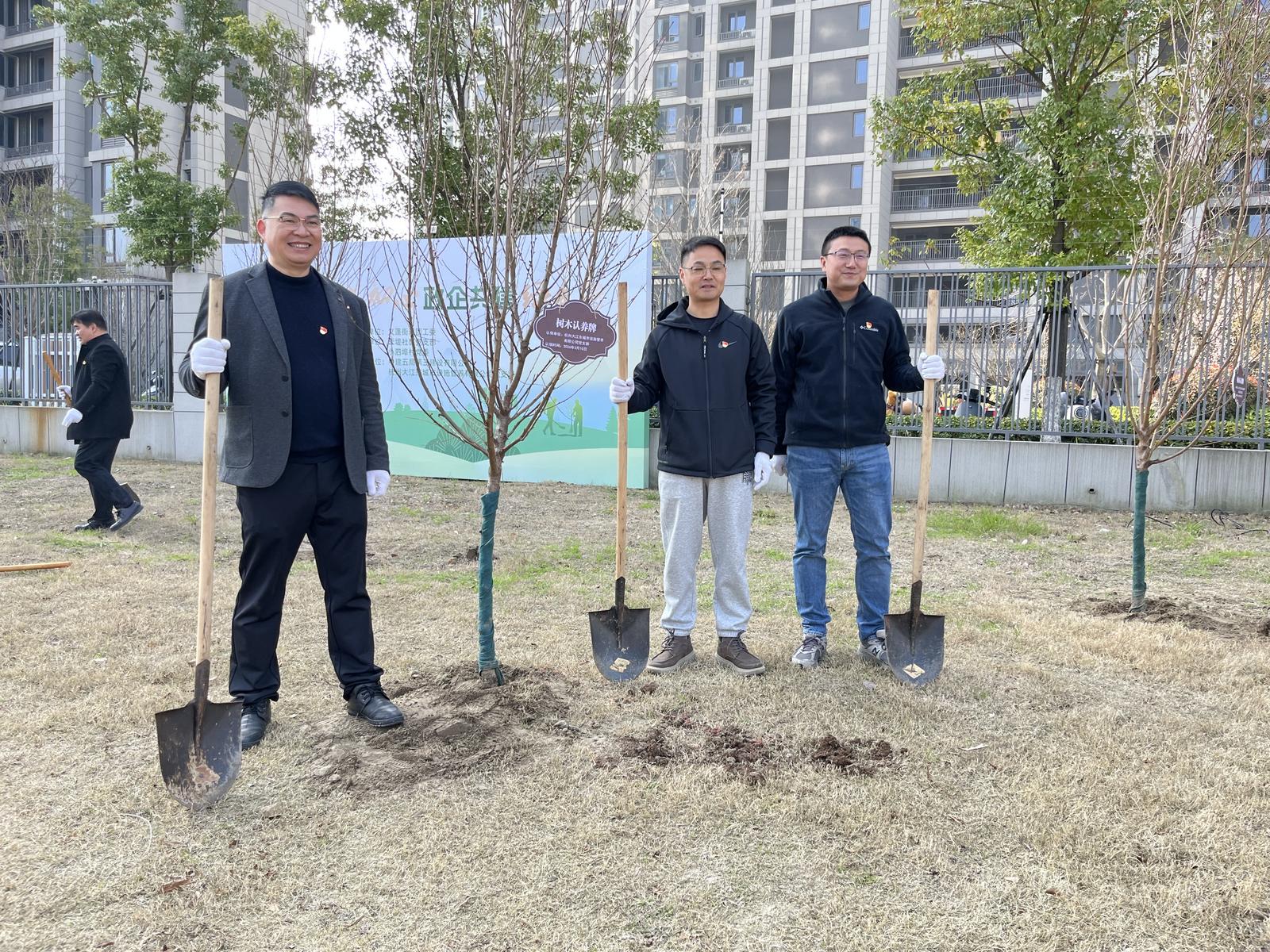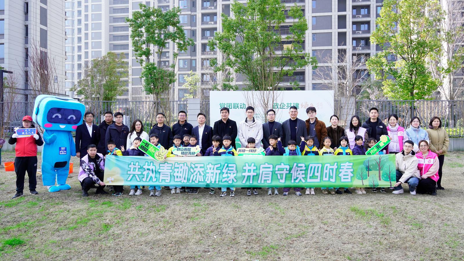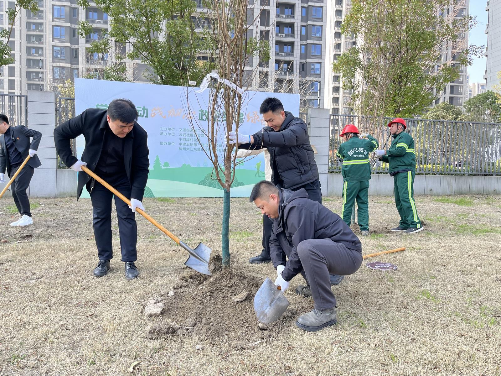 春风吐绿意,草木萌新枝,环保正当时。植树节来临之际,义蓬街道团工委、云堤社区党支部、小泗埠村党委、中建五局第三建设有限公司华东公司、杭州大江东城市设施管养有限公司党支部、萧山农商银行头蓬支行、理想国幼儿园钱塘园齐聚一堂,携手开展“党团联动践初心,政企共建绿色行”党建联建活动,亲手为家园添绿。