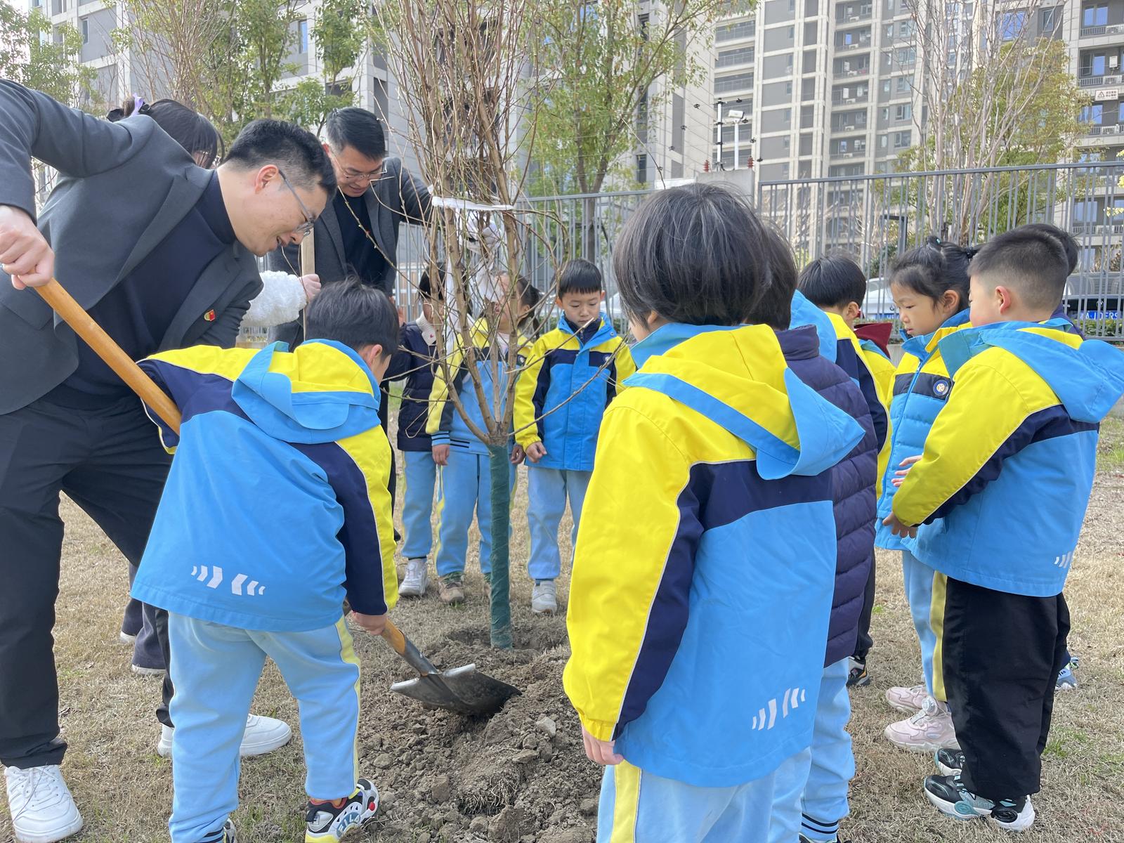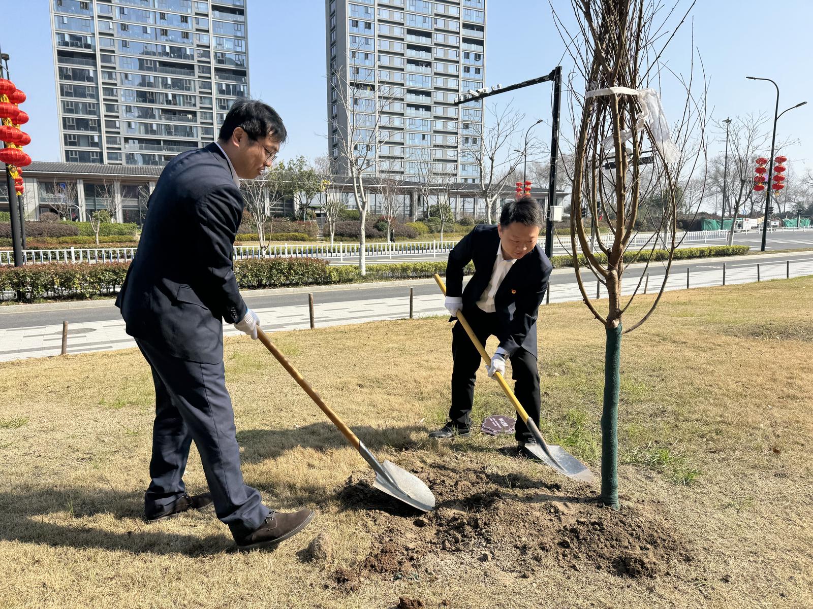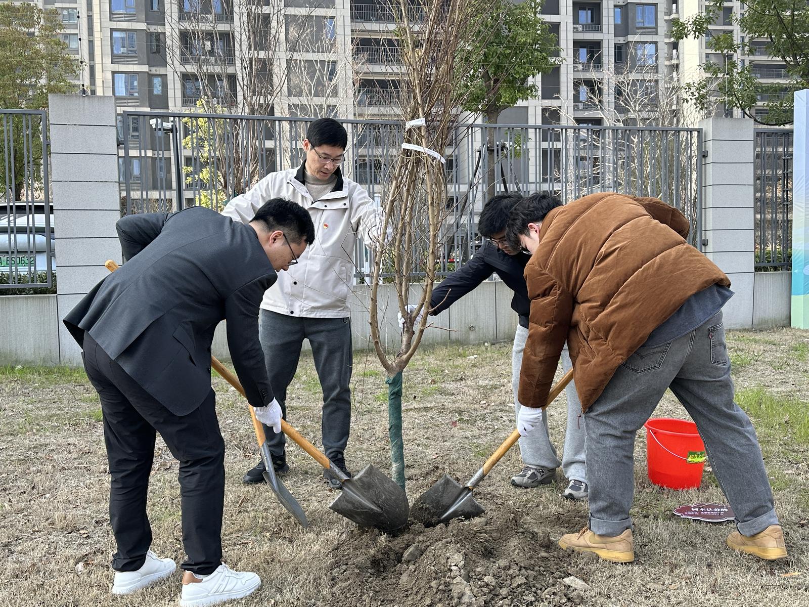 春风吐绿意,草木萌新枝,环保正当时。植树节来临之际,义蓬街道团工委、云堤社区党支部、小泗埠村党委、中建五局第三建设有限公司华东公司、杭州大江东城市设施管养有限公司党支部、萧山农商银行头蓬支行、理想国幼儿园钱塘园齐聚一堂,携手开展“党团联动践初心,政企共建绿色行”党建联建活动,亲手为家园添绿。