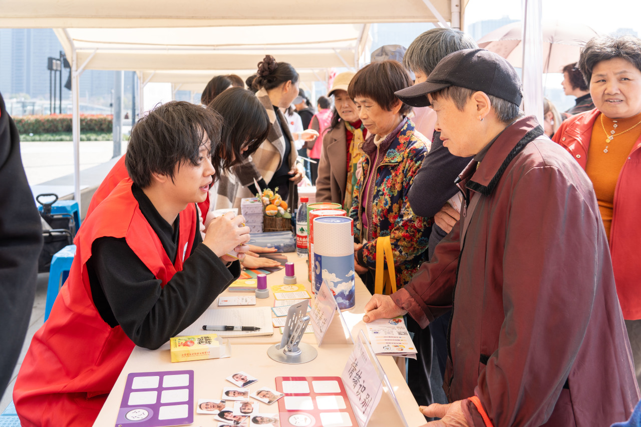 妇联健康知识普及区: 钱塘区妇联专门设立摊位,向过往女性普及妇女健康知识,并精心准备了暖心奶茶,在乍暖还春的天气里为姐妹们送上一份甜蜜关怀,让健康理念在温馨互动中深入人心。