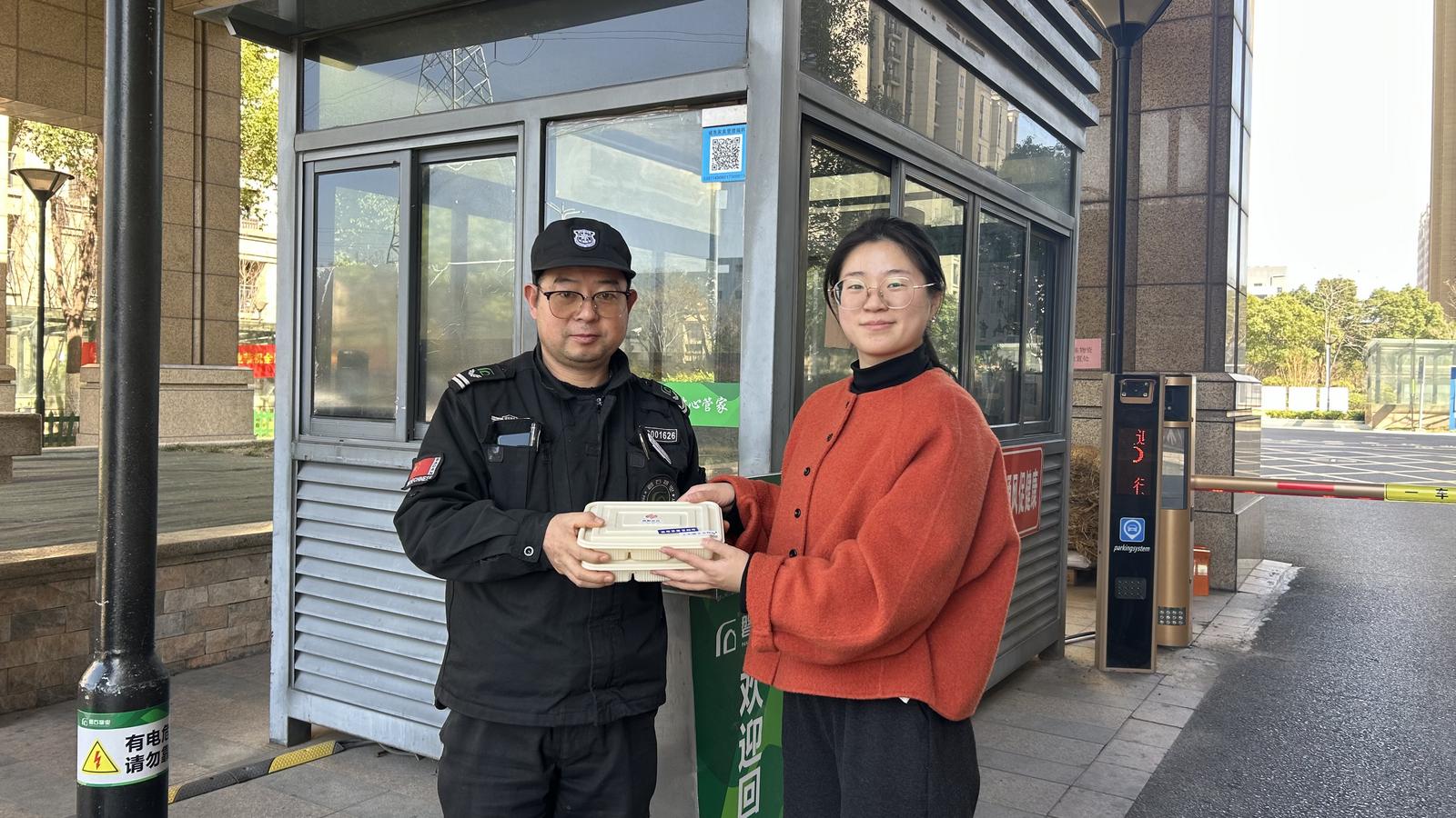 饺子出锅后,社区将热气腾腾的“安心饺”送到新春坚守岗位的保安等劳动者手中,向一线值守人员致以节日问候与诚挚感谢。一份饺子、一句叮嘱,既传递社区关怀,也再次普及反诈知识,让平安守护覆盖辖区每一个角落。