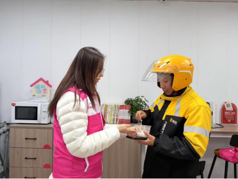 驿站内,欢声笑语此起彼伏。小哥们一边品尝着香甜的汤圆,一边交流着近日工作中的见闻与生活中的点滴。工作人员也借机与小哥亲切攀谈,仔细询问他们在工作中遇到的困难与需求,比如小哥驿站还需要为他们提供哪些服务和保障等,并记录下每一条建议。在交流中,工作人员不忘温情叮嘱小哥们,在保障居民便利生活的同时,务必将交通安全放在首位,注意劳逸结合,保重身体,并再次诚挚地发出邀请:“小哥驿站永远是大家的‘第二个家’,累了就来歇歇脚,渴了就来喝口水,手机没电了就来充充电,有任何需要随时找我们。”