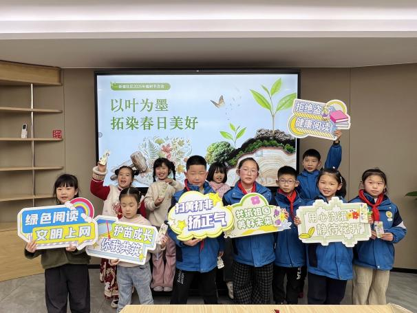 围绕“护苗成长”“绿色上网”等主题,紧抓“植树节”“开学季”等重要时间节点,开展形式多样的“护苗”系列活动。除传统的宣传讲解、分发“扫黄打非”宣传手册外,新盛社区开展“以叶为墨・拓染春日美好”主题活动,创新以植物拓染书签为载体。随着小锤子轻轻敲打,植物的天然纹理与斑斓色彩缓缓渗透书签,将春日生机永久定格,辅以“护苗成长”等字样,一枚枚承载着自然之美与护苗理念的特色拓染书签就此诞生。“这枚书签既是我的春日手作,也是我的绿色承诺书!”前来参加活动的小黄同学将亲手制作的拓染书签夹在书本内,时刻提醒自己坚持绿色阅读。